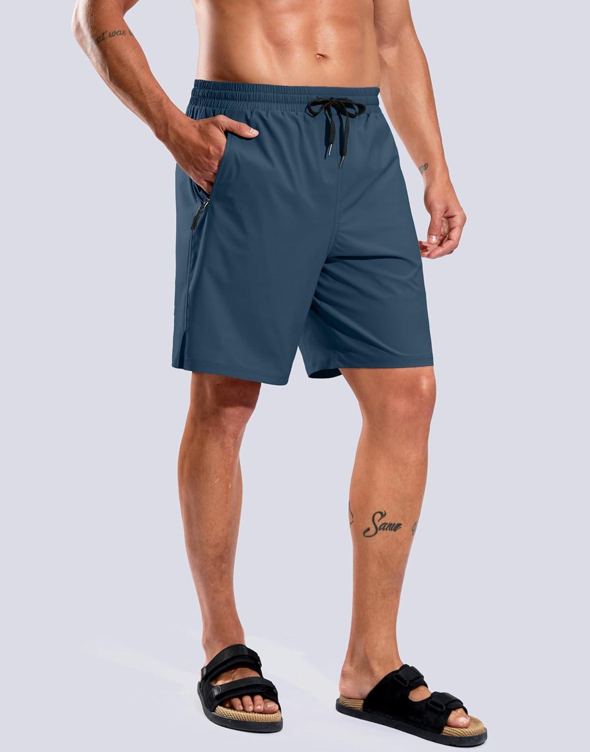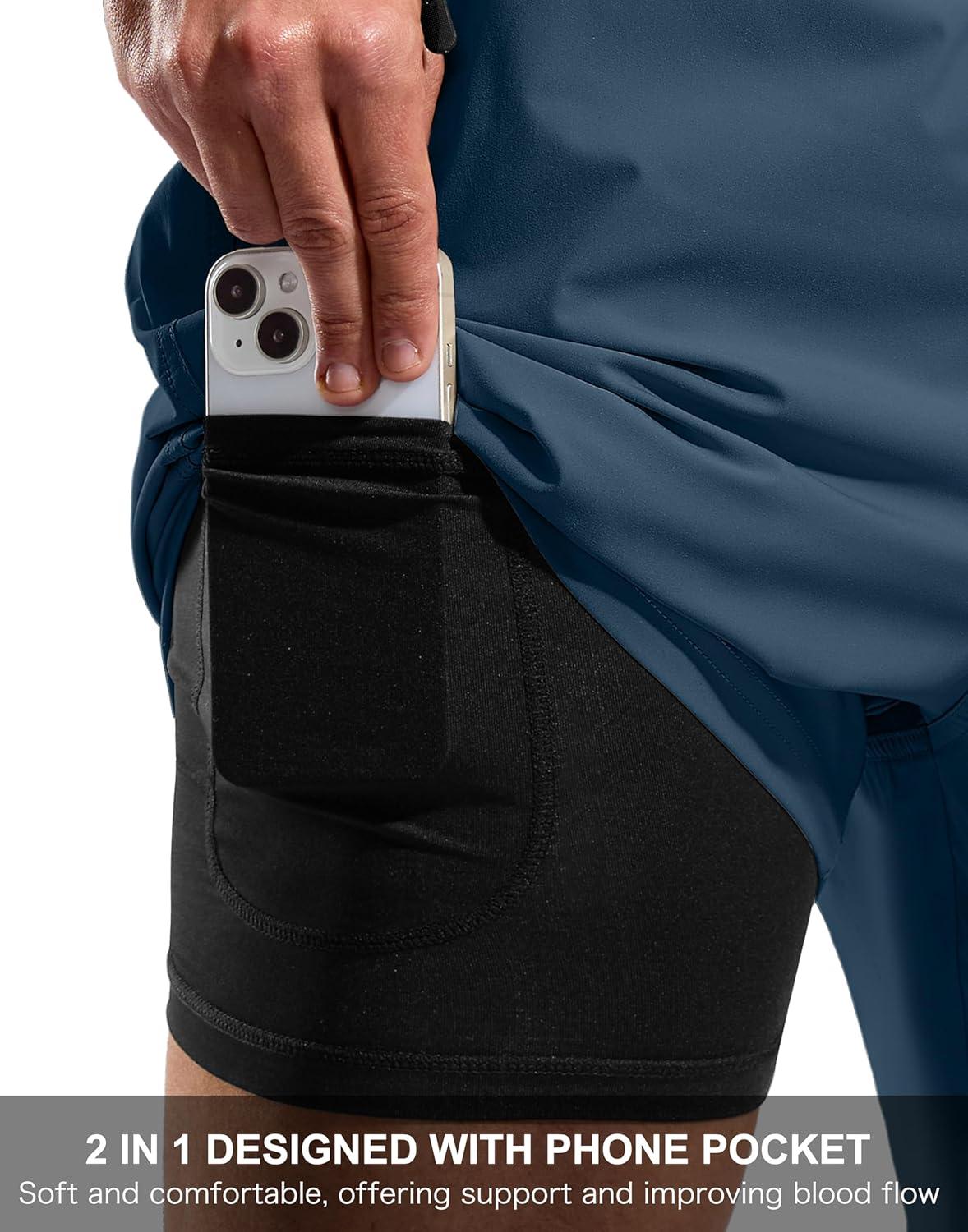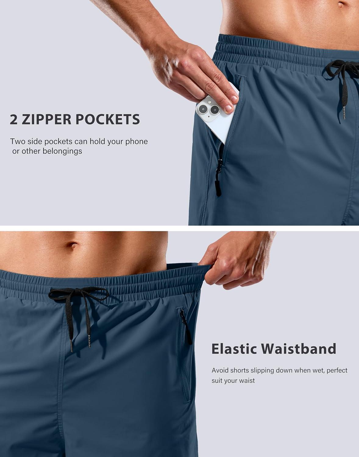 G Gradual Mens Swim Trunks with Compression Liner 7″ Quick Dry Board Shorts Swimsuit Bathing Suit for Men with Zipper Pockets(Dark Blue)