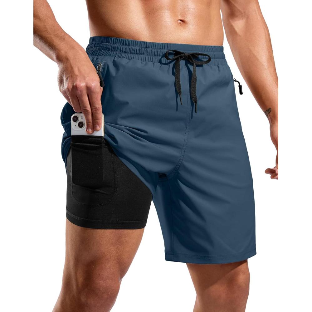 imageG Gradual Mens Swim Trunks with Compression Liner 7 Quick Dry Board Shorts Swimsuit Bathing Suit for Men with Zipper PocketsDark Blue