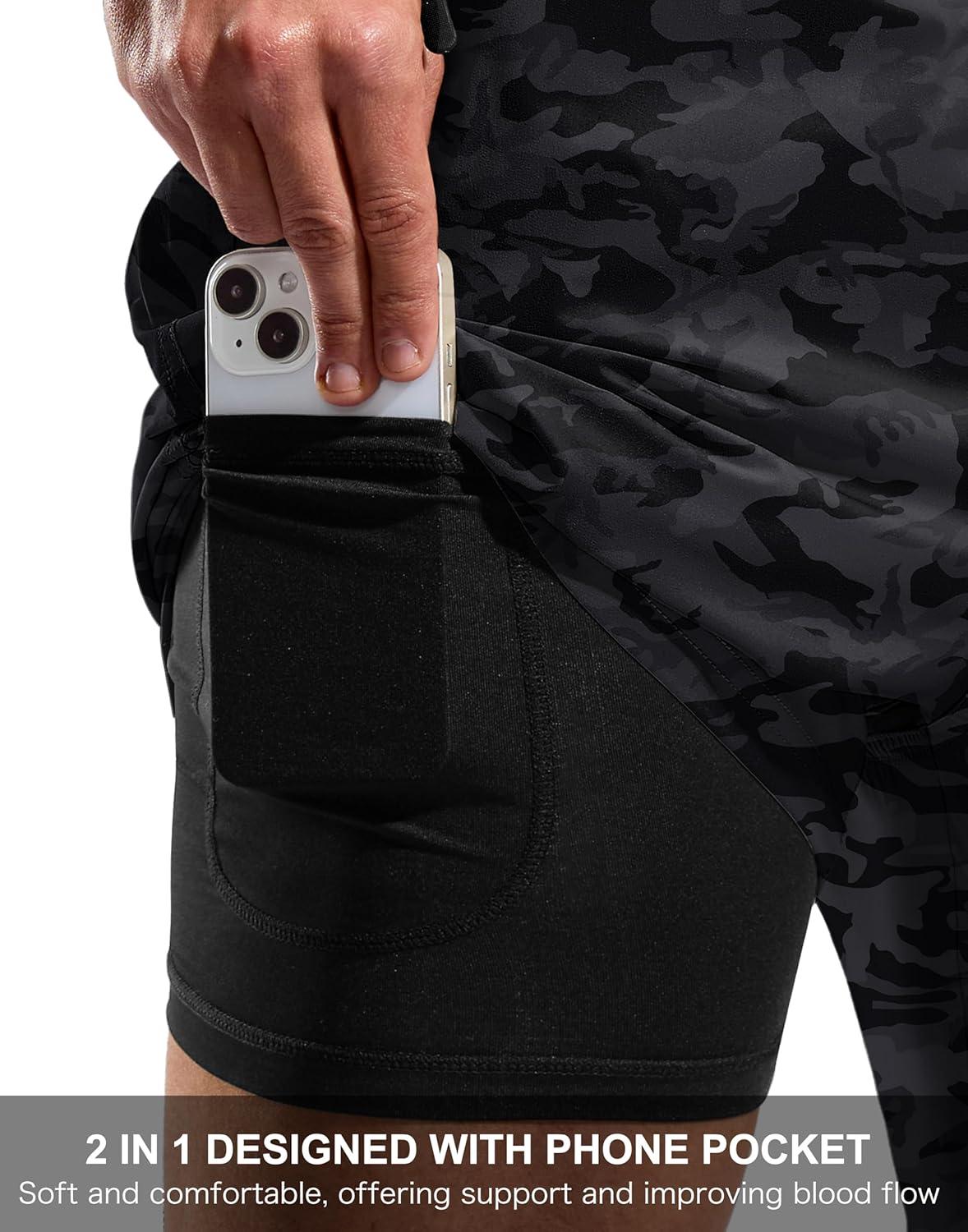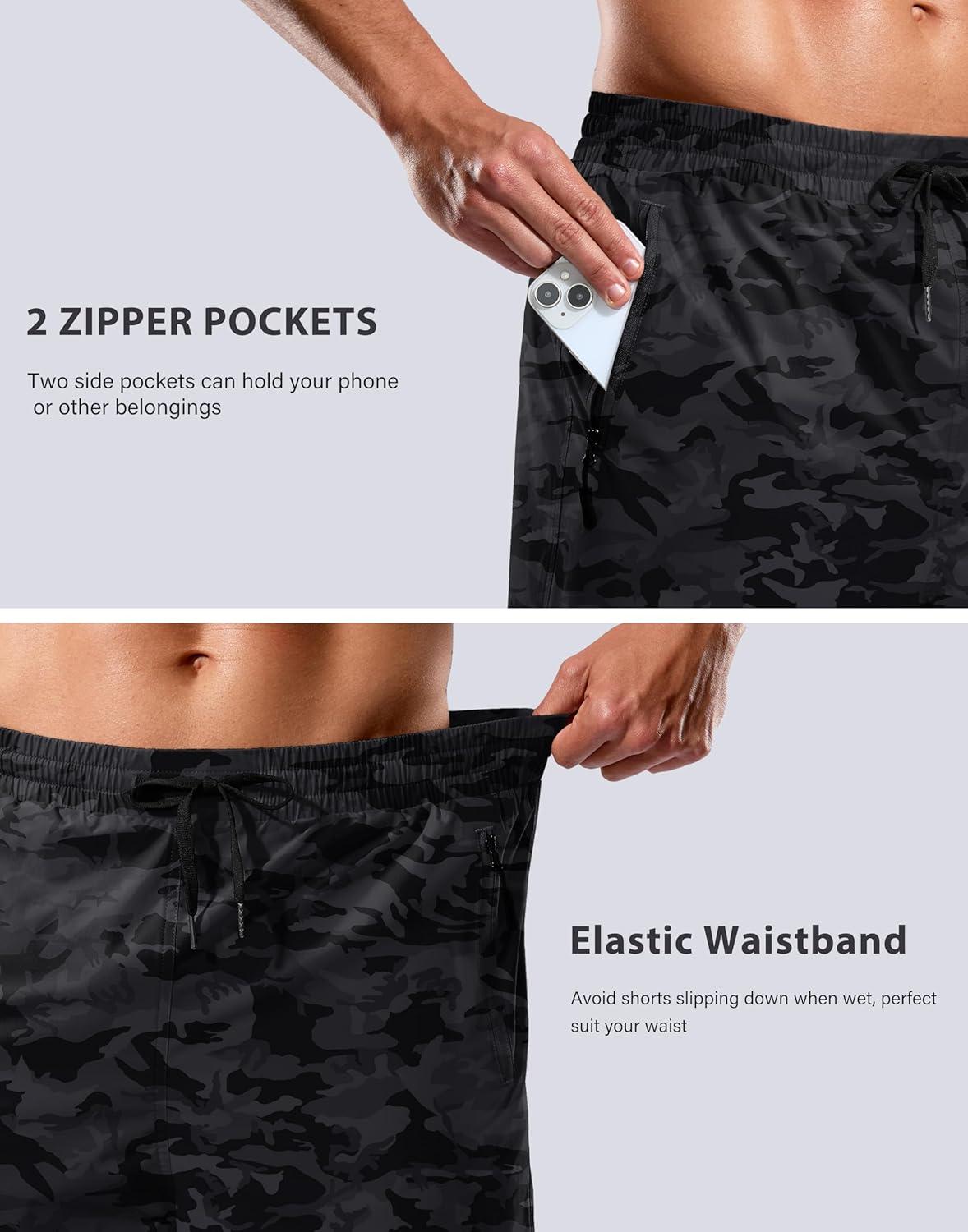 G Gradual Mens Swim Trunks with Compression Liner 7″ Quick Dry Board Shorts Swimsuit Bathing Suit for Men with Zipper Pockets(Grey Camo)