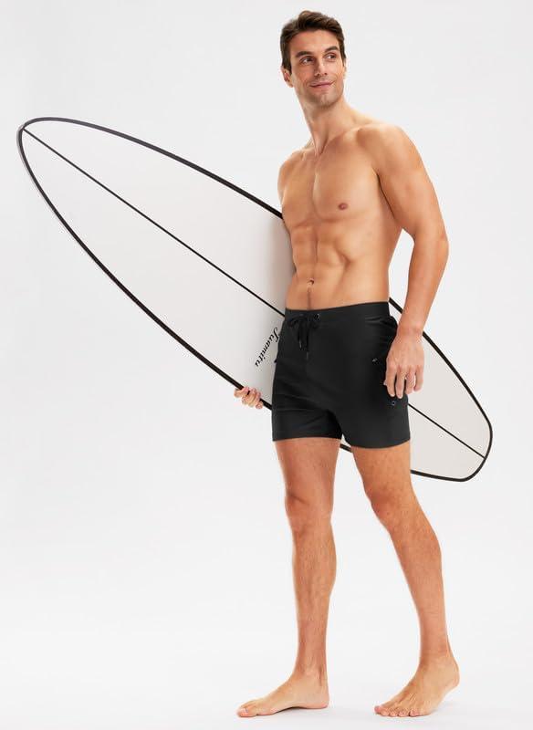 G Gradual Men's Swimsuit Trunks with Zipper Pockets Quick Dry Swimwear Bathing Suit Swim Briefs Board Shorts for Men(Black)