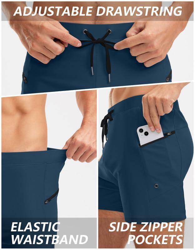 imageG Gradual Mens Swimsuit Trunks with Zipper Pockets Quick Dry Swimwear Bathing Suit Swim Briefs Board Shorts for MenDark Blue