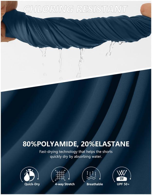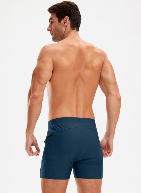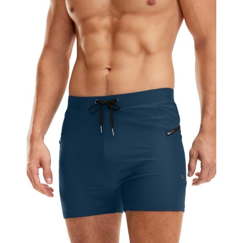 G Gradual Men's Swimsuit Trunks with Zipper Pockets Quick Dry Swimwear Bathing Suit Swim Briefs Board Shorts for Men(Dark Blue)
