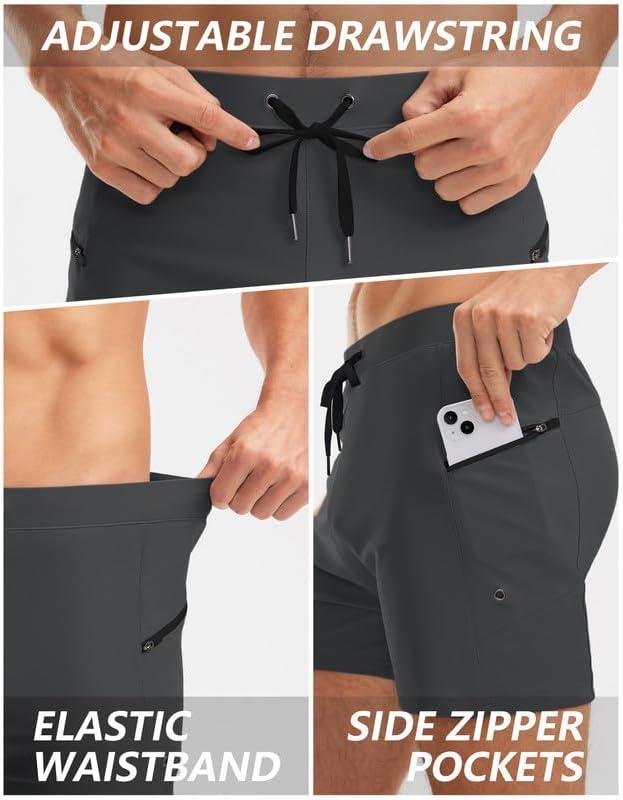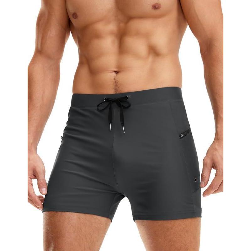 G Gradual Men's Swimsuit Trunks with Zipper Pockets Quick Dry Swimwear Bathing Suit Swim Briefs Board Shorts for Men(Dark Grey)