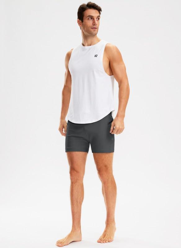 G Gradual Men’s Swimsuit Trunks with Zipper Pockets Quick Dry Swimwear Bathing Suit Swim Briefs Board Shorts for Men(Dark Grey)