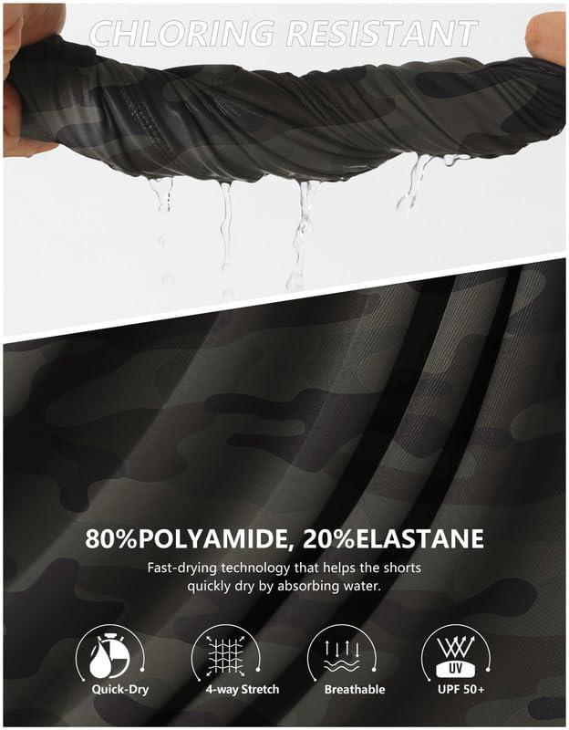 G Gradual Men's Swimsuit Trunks with Zipper Pockets Quick Dry Swimwear Bathing Suit Swim Briefs Board Shorts for Men(Green Camo)