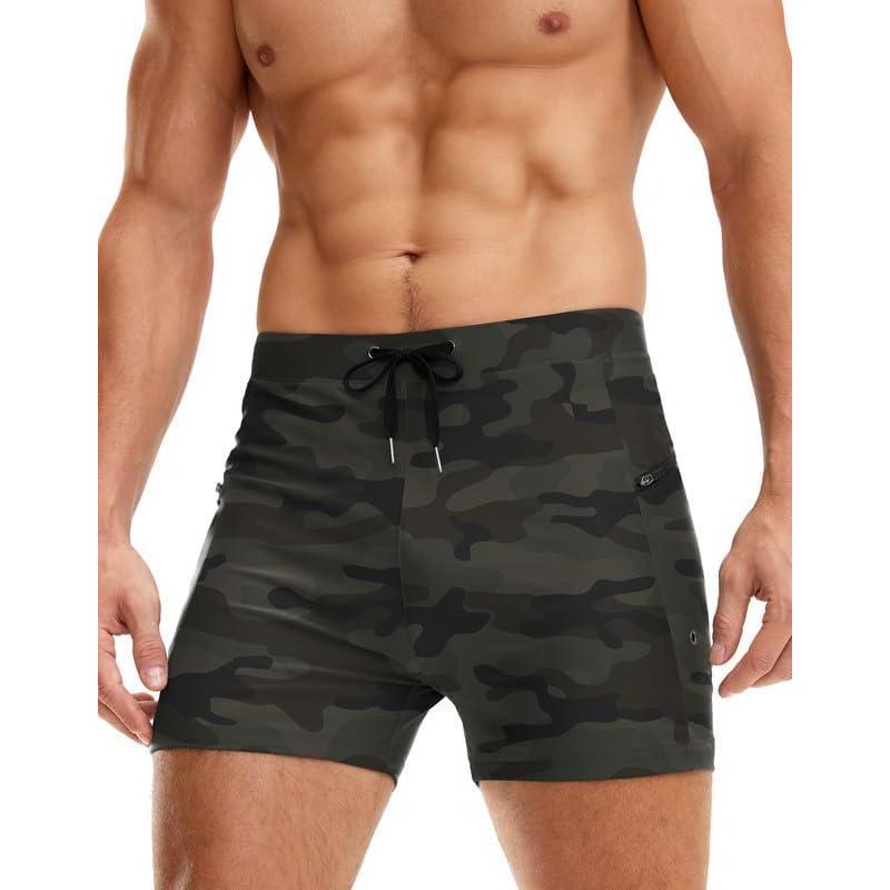 imageG Gradual Mens Swimsuit Trunks with Zipper Pockets Quick Dry Swimwear Bathing Suit Swim Briefs Board Shorts for MenGreen Camo