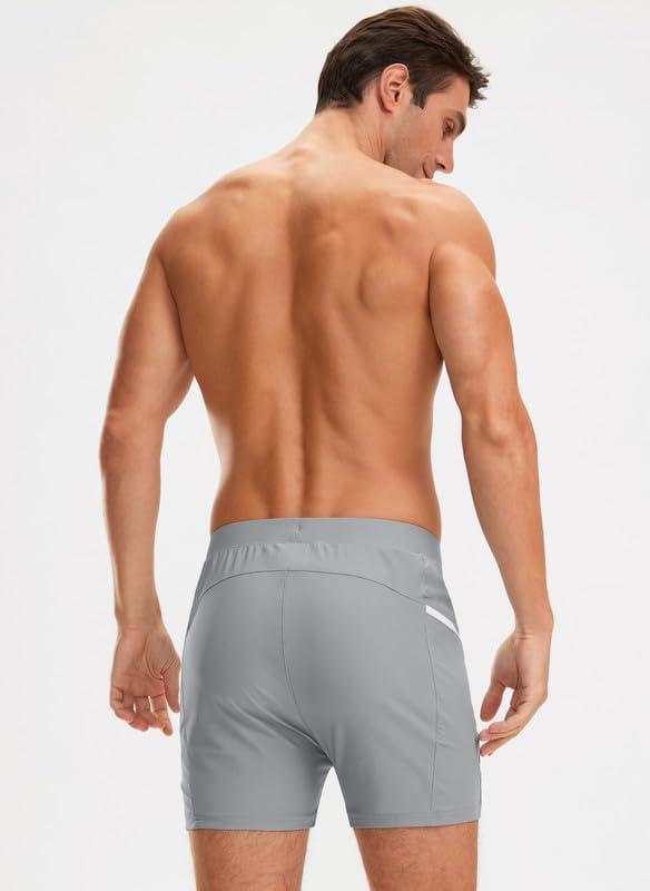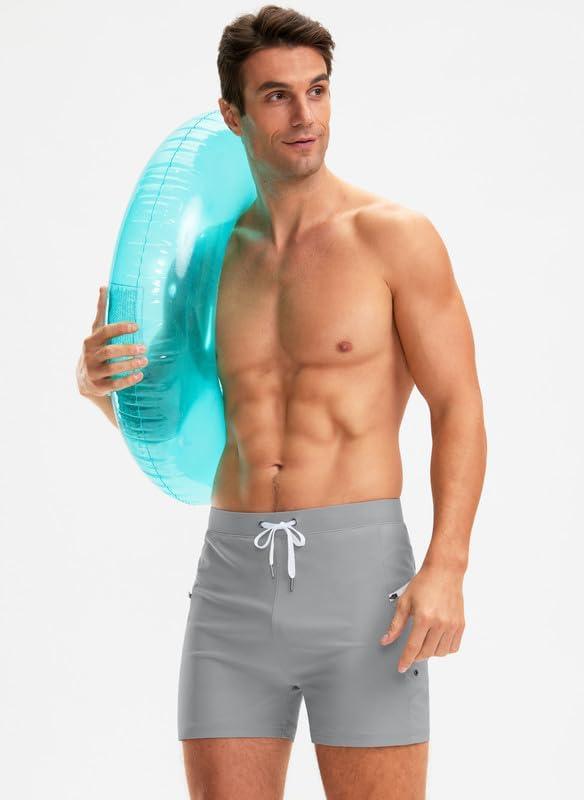 G Gradual Men's Swimsuit Trunks with Zipper Pockets Quick Dry Swimwear Bathing Suit Swim Briefs Board Shorts for Men(Light Grey)