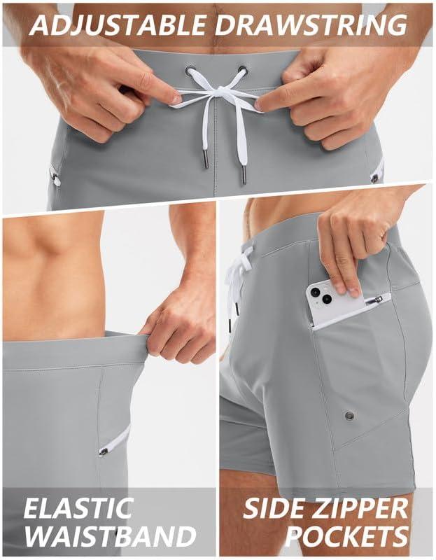 imageG Gradual Mens Swimsuit Trunks with Zipper Pockets Quick Dry Swimwear Bathing Suit Swim Briefs Board Shorts for MenLight Grey