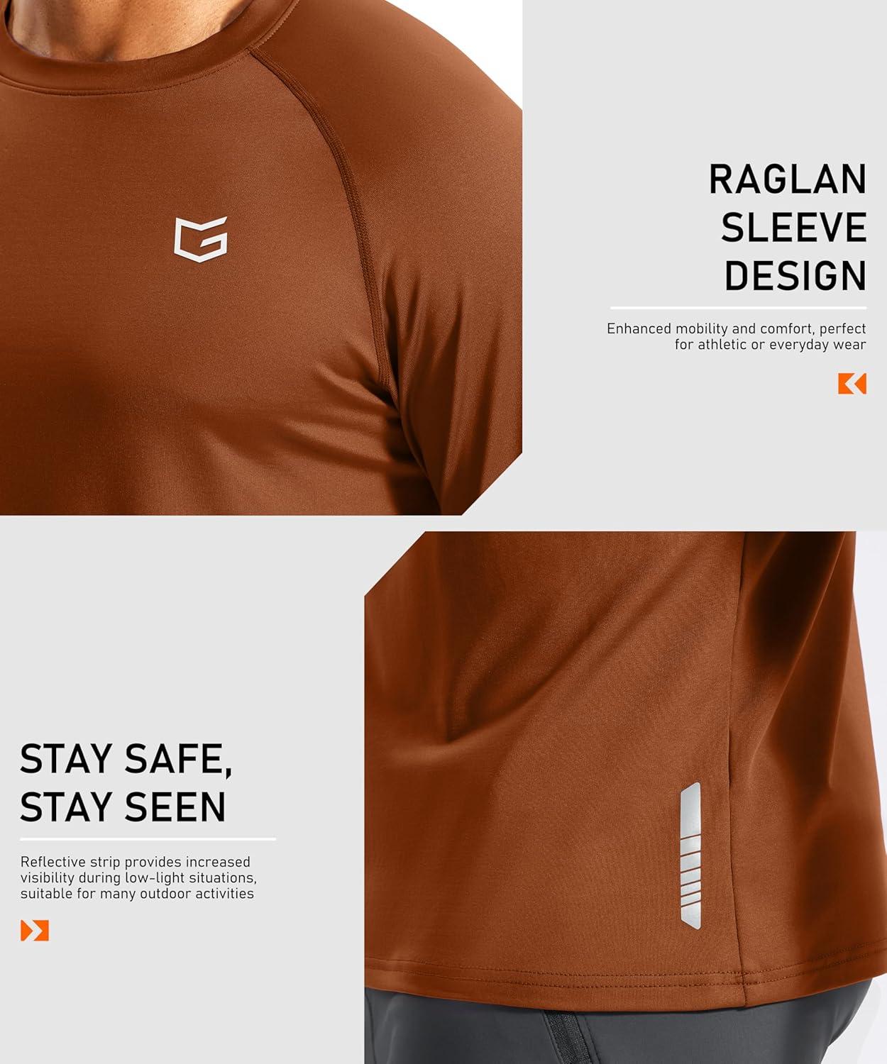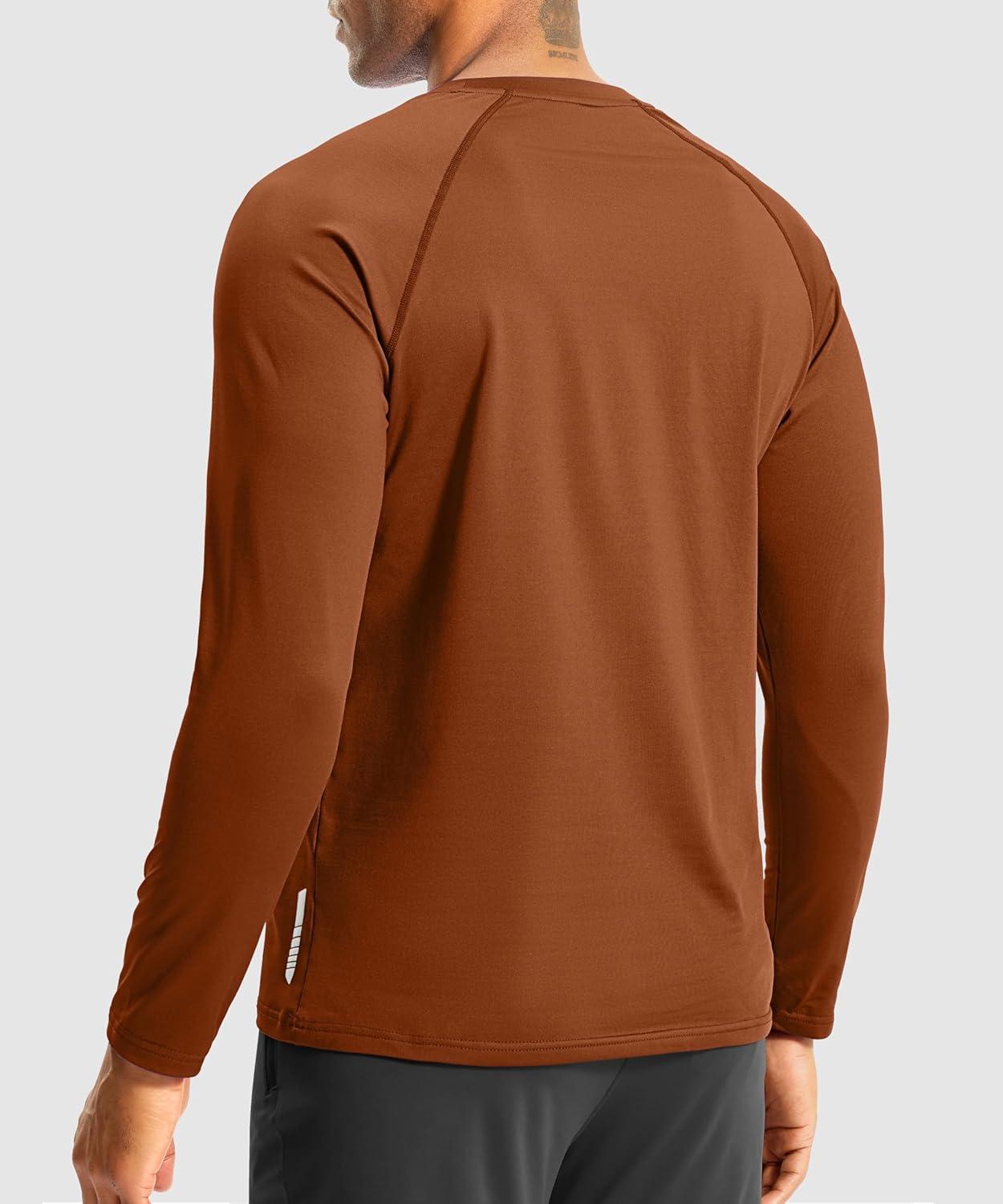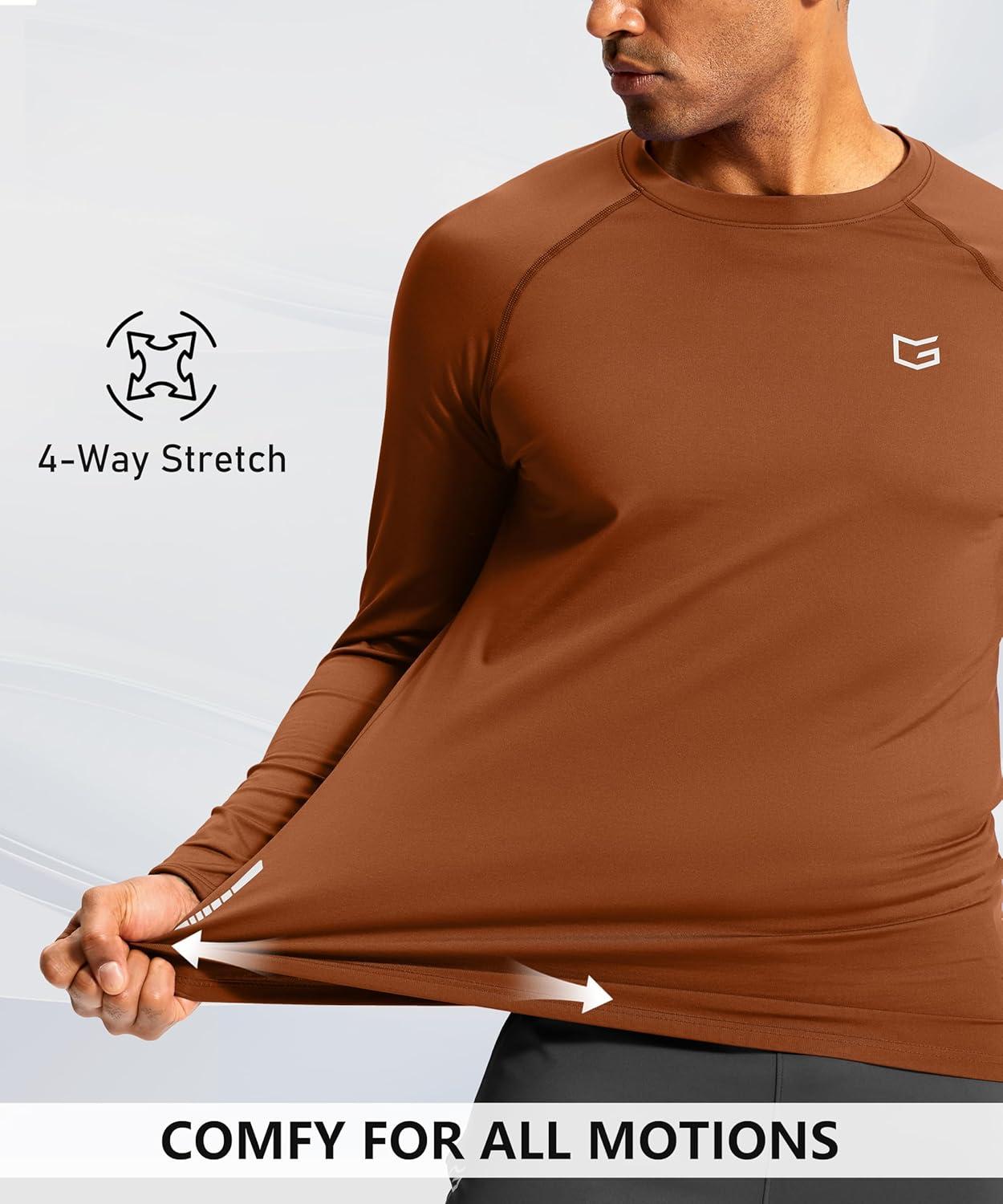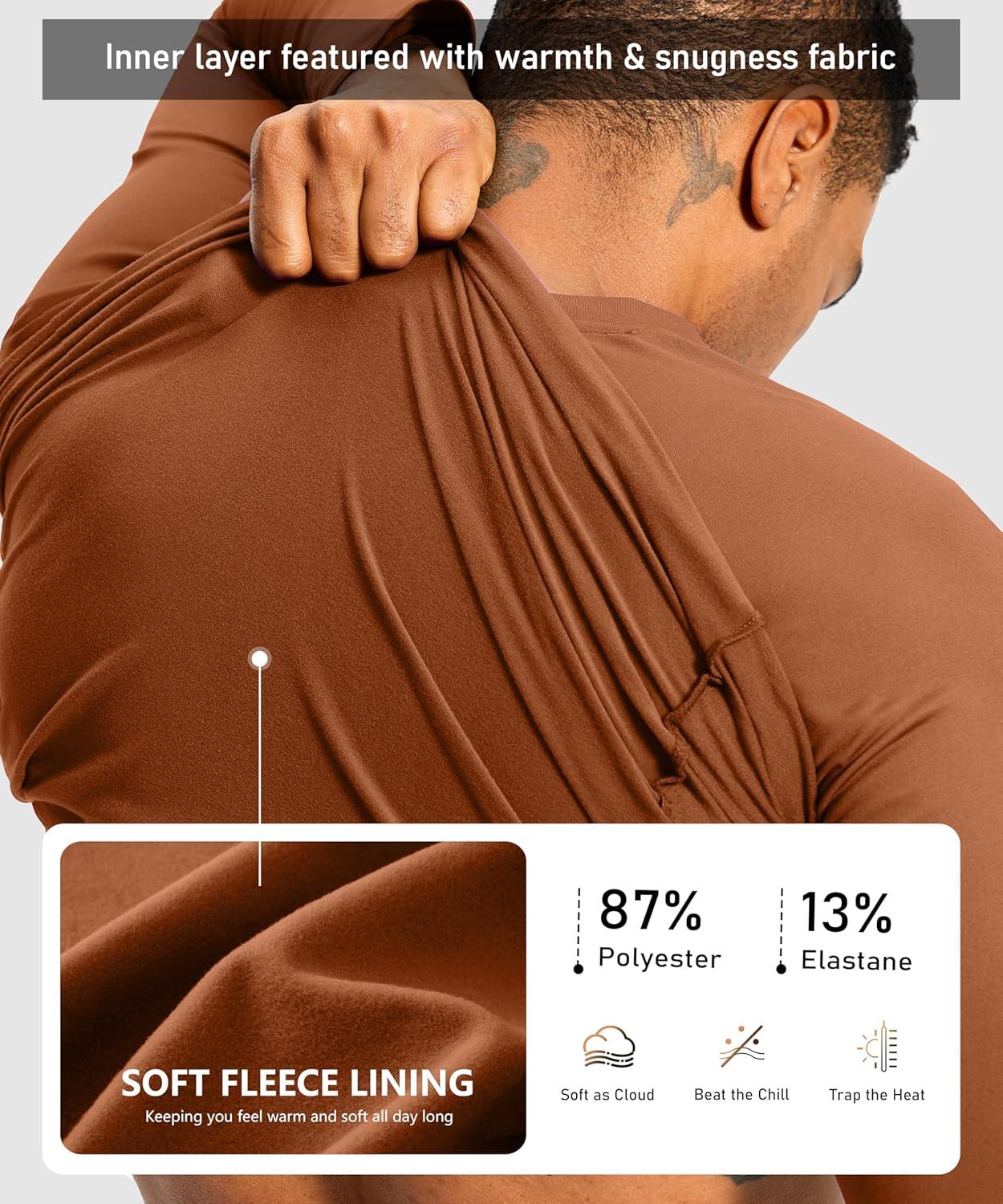 G Gradual Men's Thermal Shirts Long Sleeve Athletic Workout T-Shirts Crewneck Fleece Lind Base Layer for Men Cold Weather(Caramel)