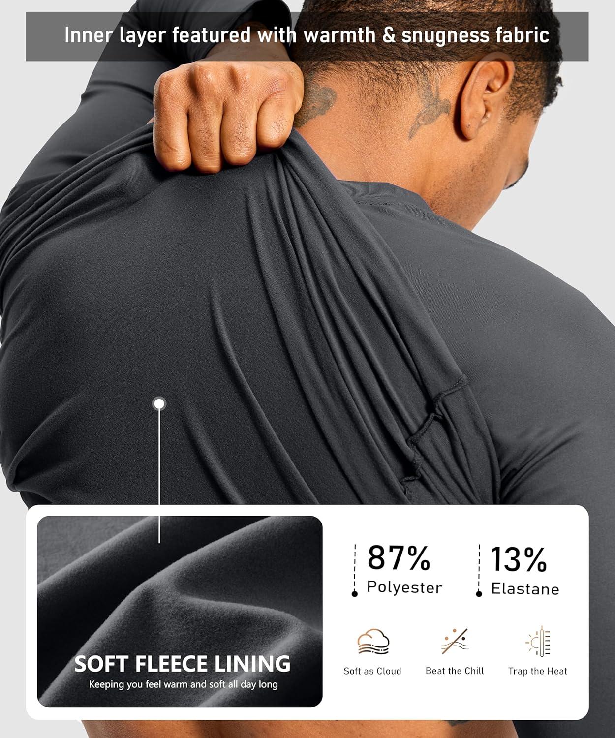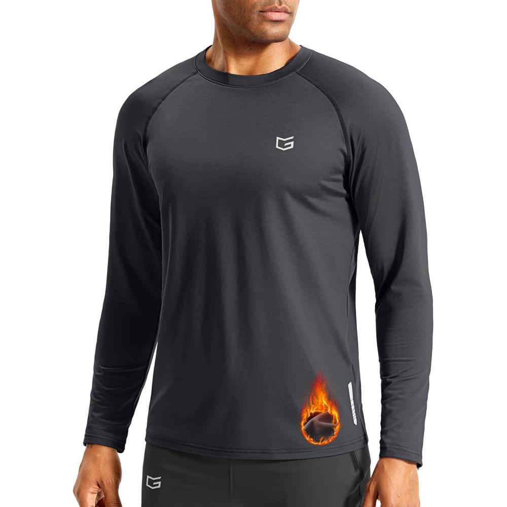 G Gradual Men’s Thermal Shirts Long Sleeve Athletic Workout T-Shirts Crewneck Fleece Lind Base Layer for Men Cold Weather(Dark Grey)