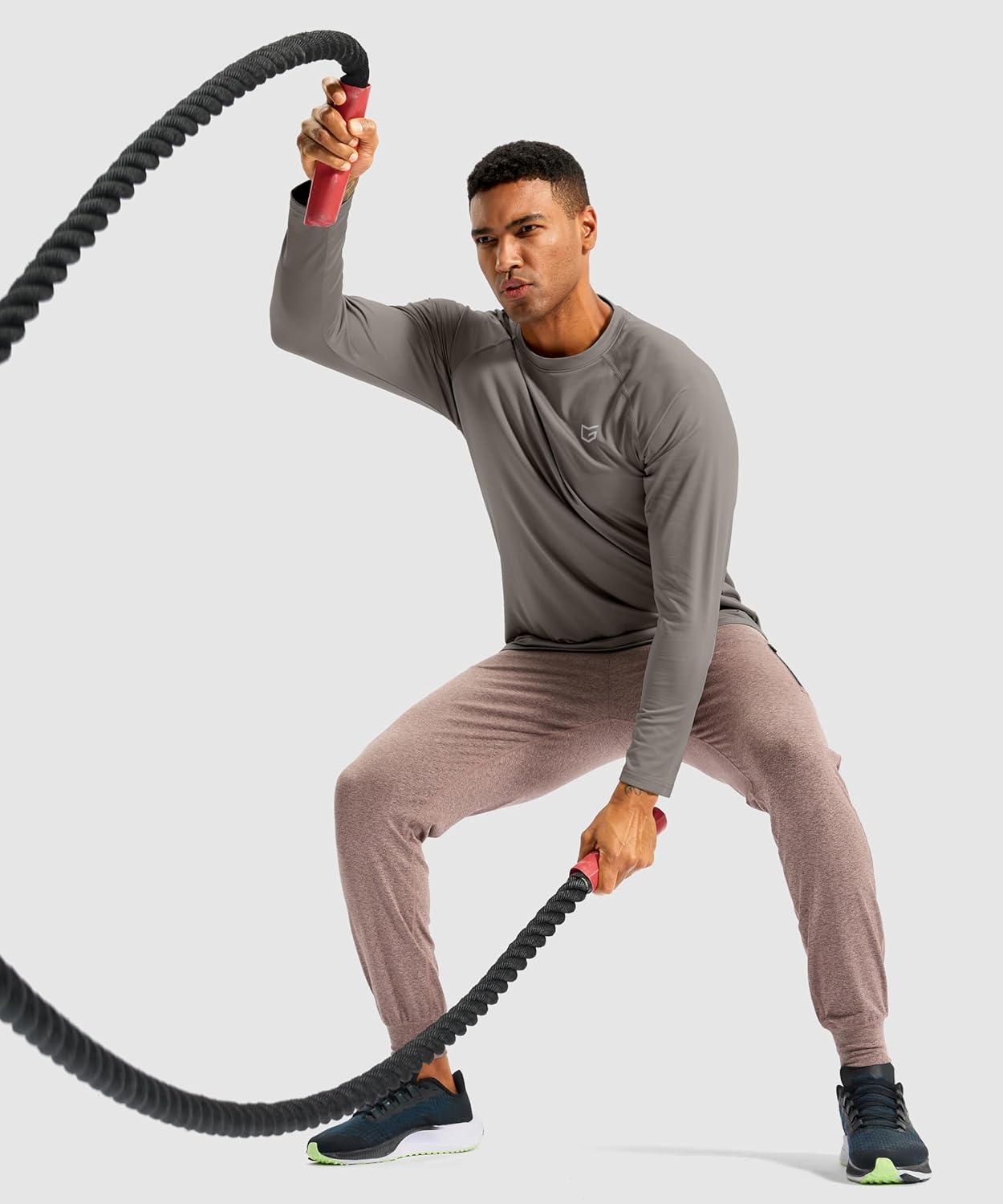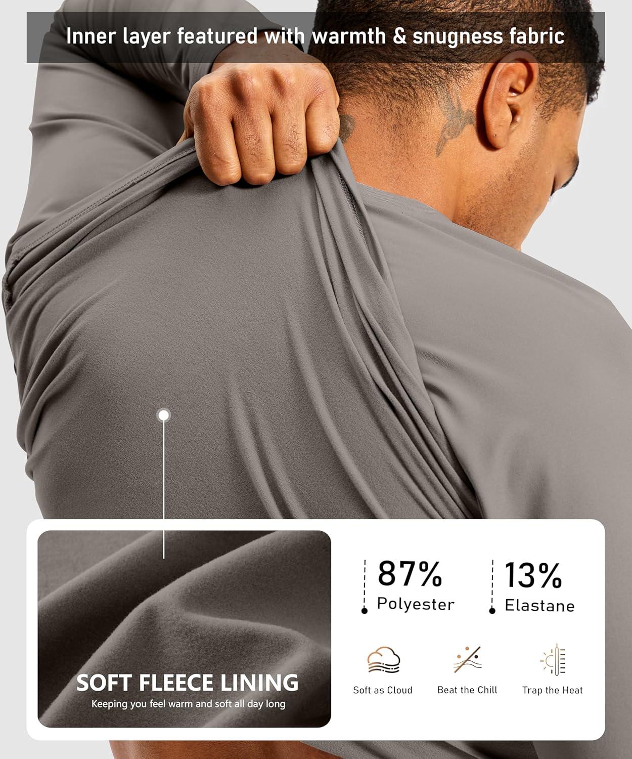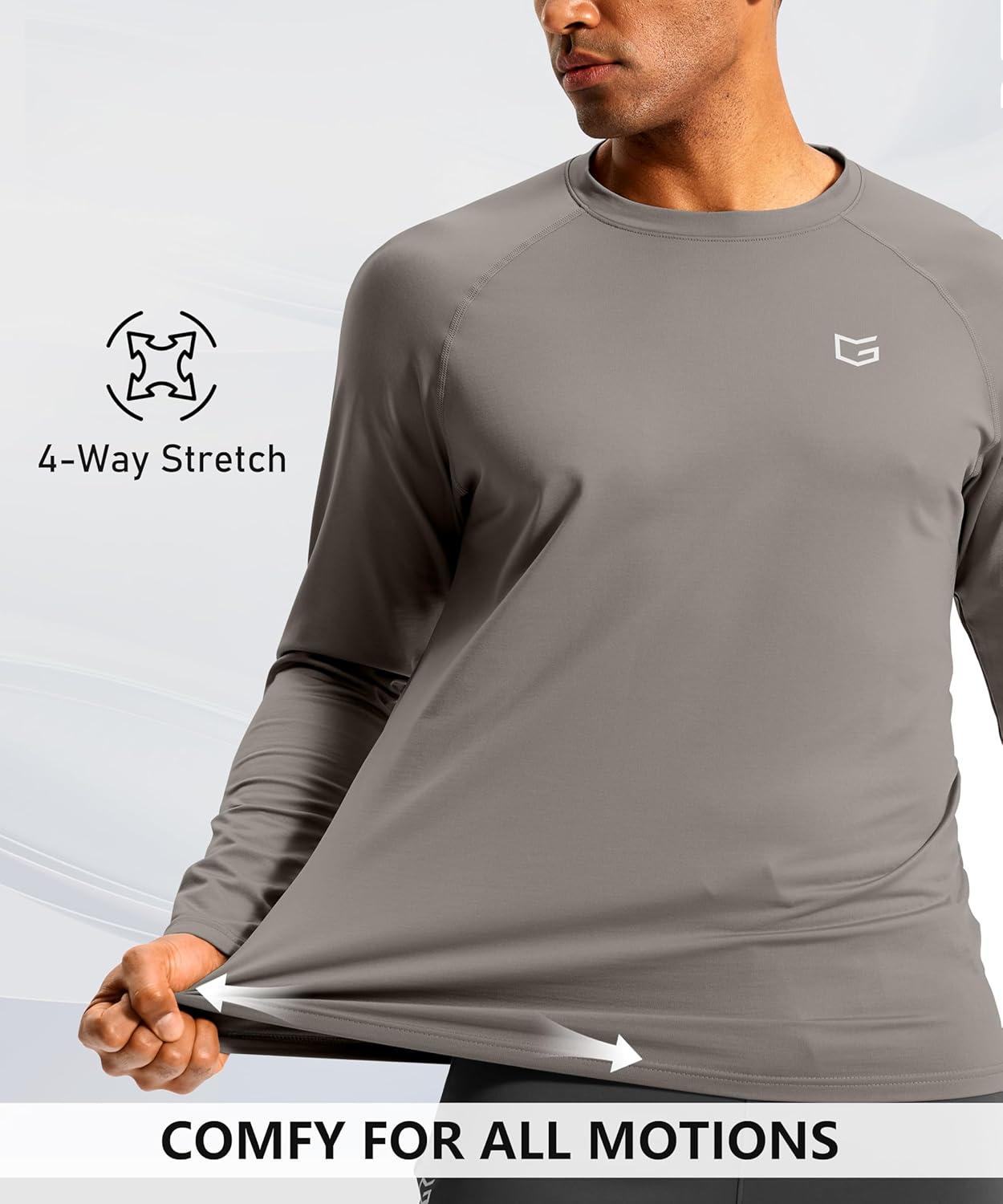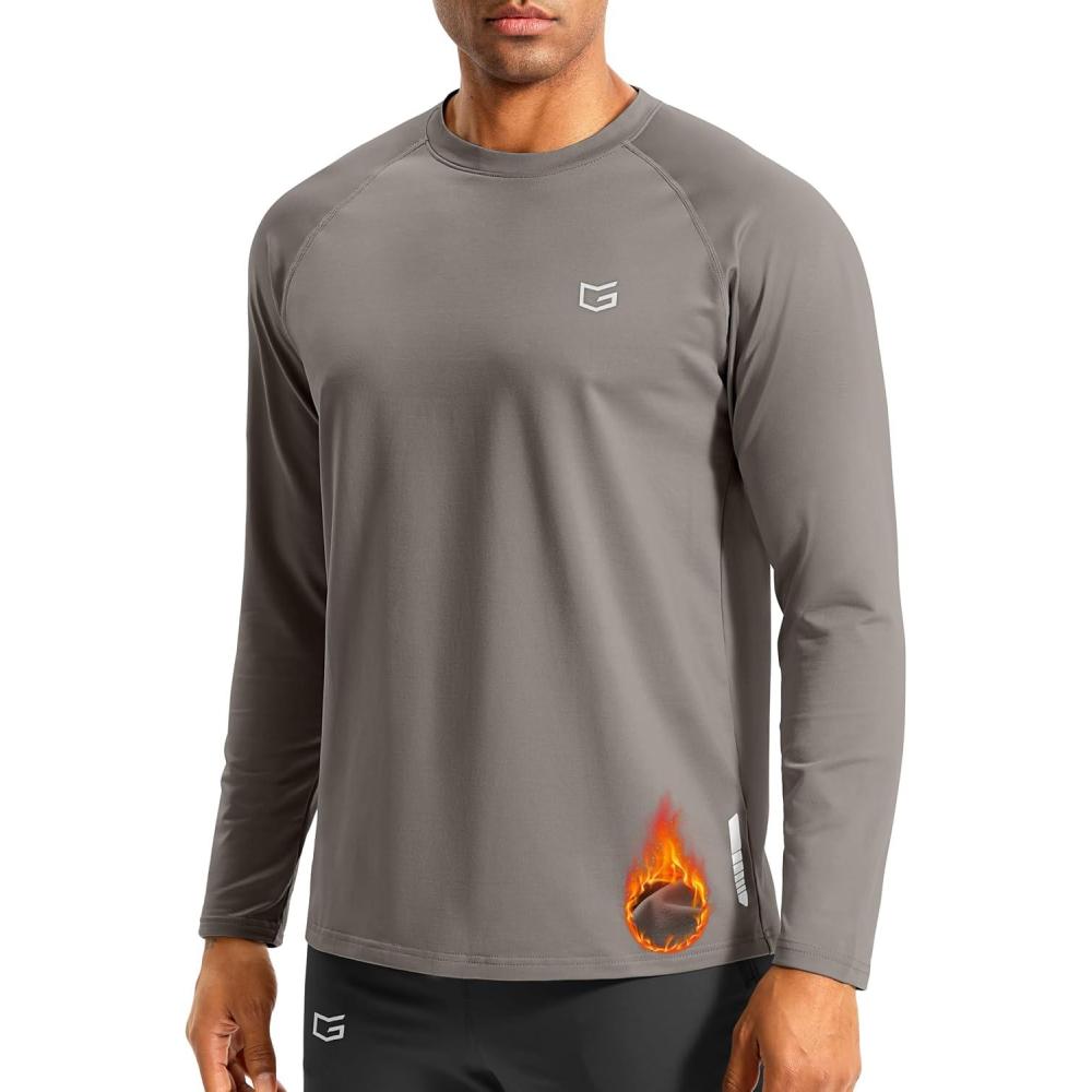 G Gradual Men's Thermal Shirts Long Sleeve Athletic Workout T-Shirts Crewneck Fleece Lind Base Layer for Men Cold Weather(Light Grey)