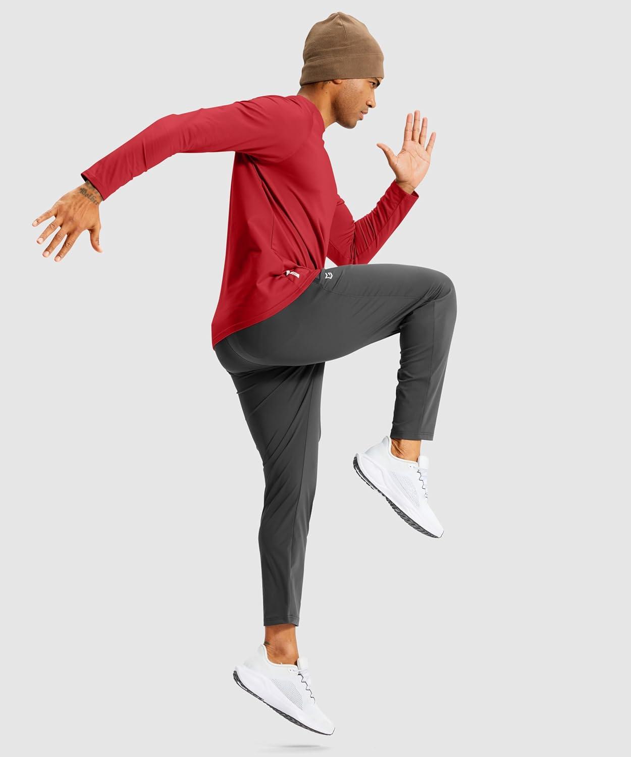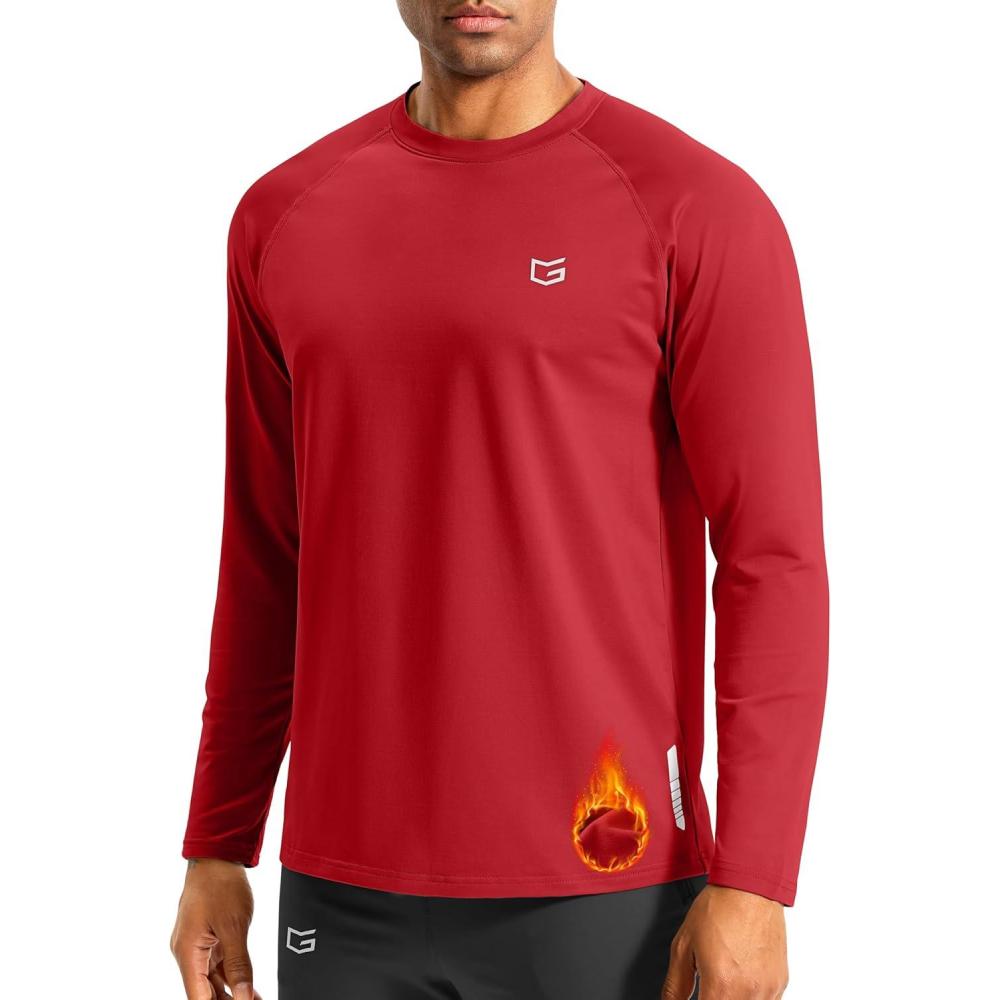G Gradual Men’s Thermal Shirts Long Sleeve Athletic Workout T-Shirts Crewneck Fleece Lind Base Layer for Men Cold Weather(Red)