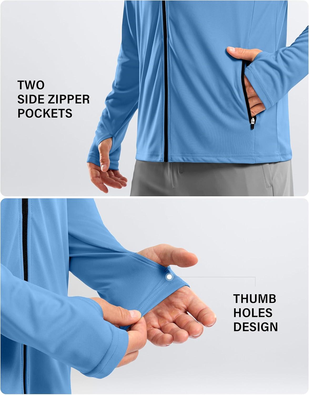 G Gradual Men's UPF 50+ Sun Protection Hoodie Jacket Lightweight Full Zip Hoodies Long Sleeve Shirts for Men Hiking Fishing(Sky Blue)