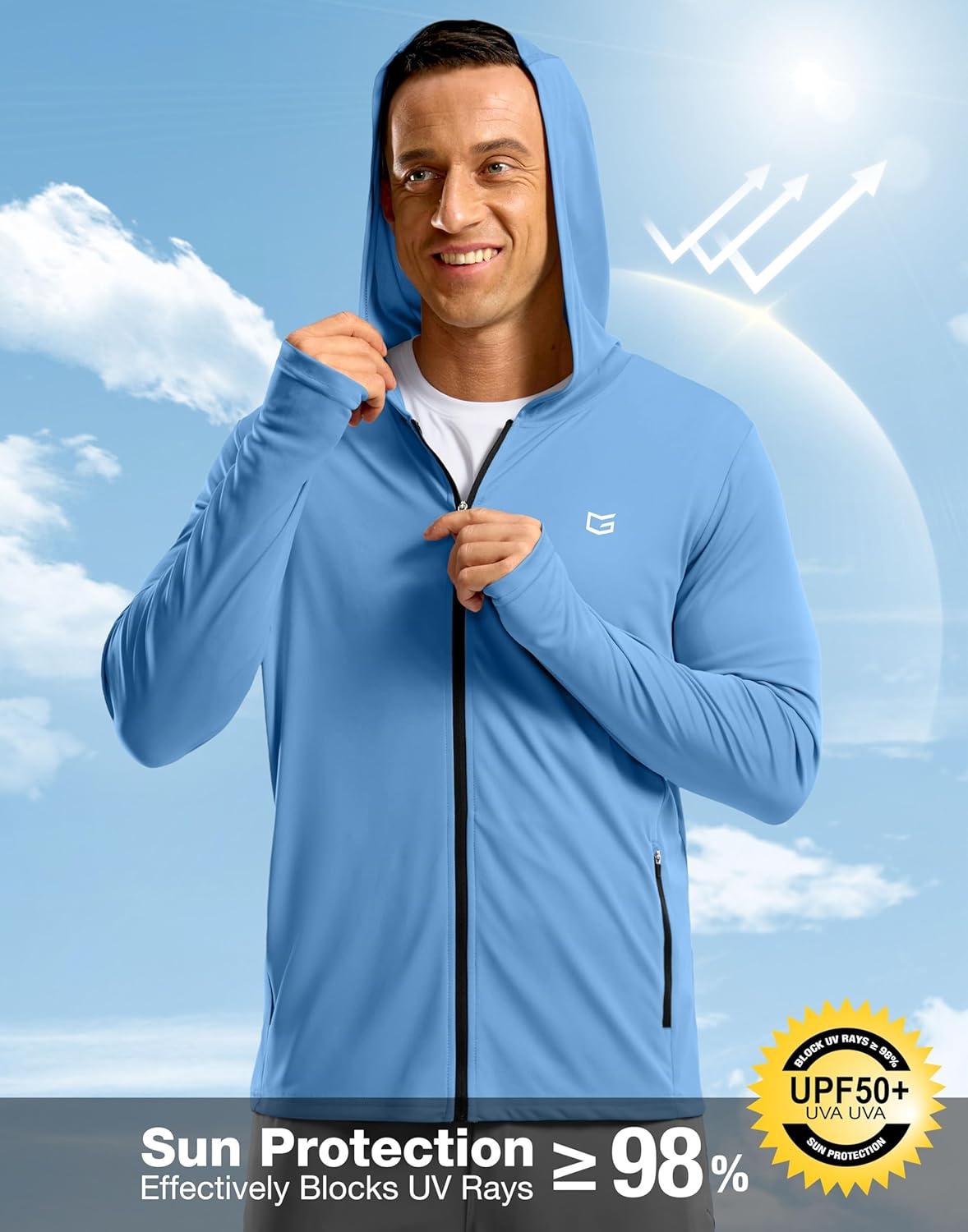 G Gradual Men’s UPF 50+ Sun Protection Hoodie Jacket Lightweight Full Zip Hoodies Long Sleeve Shirts for Men Hiking Fishing(Sky Blue)