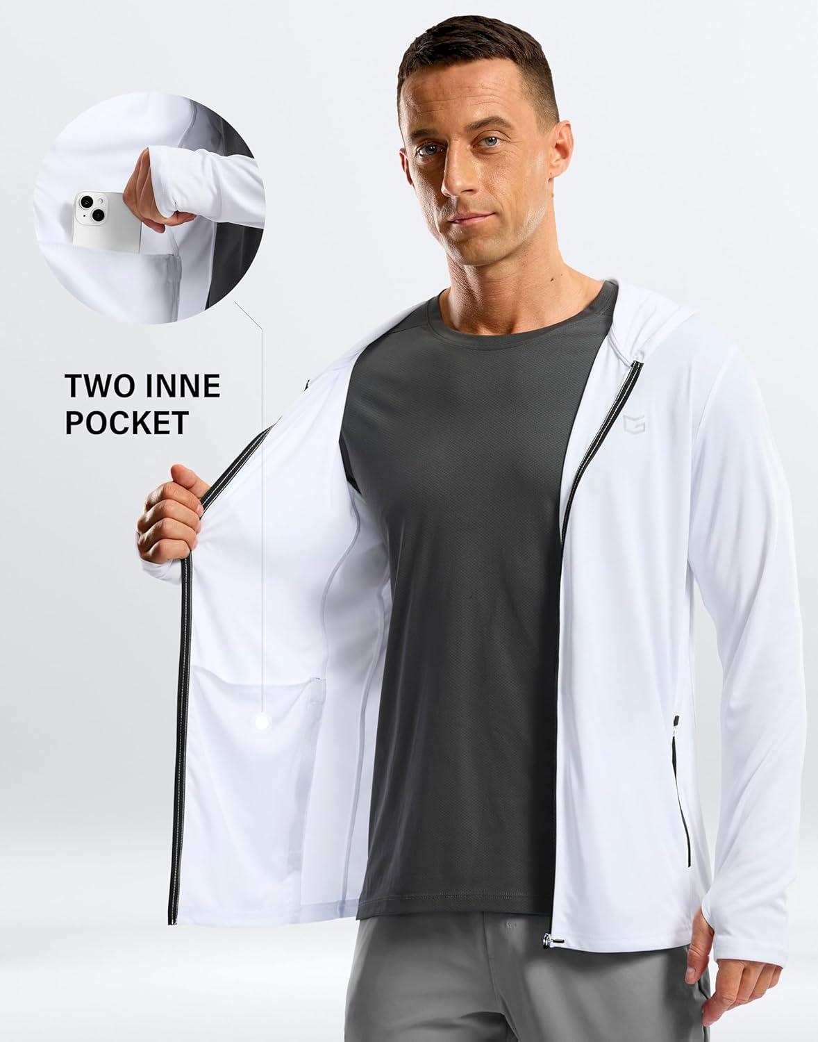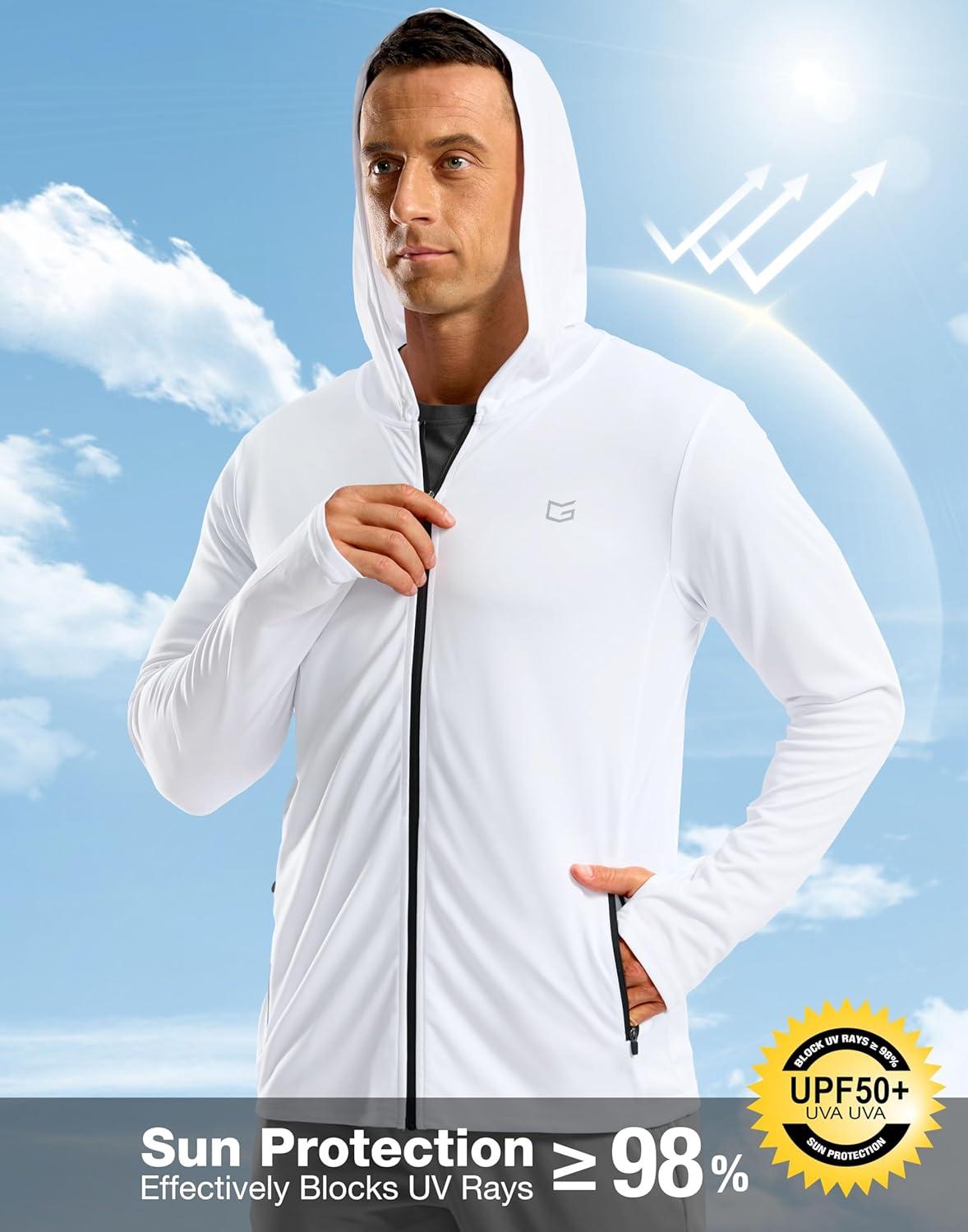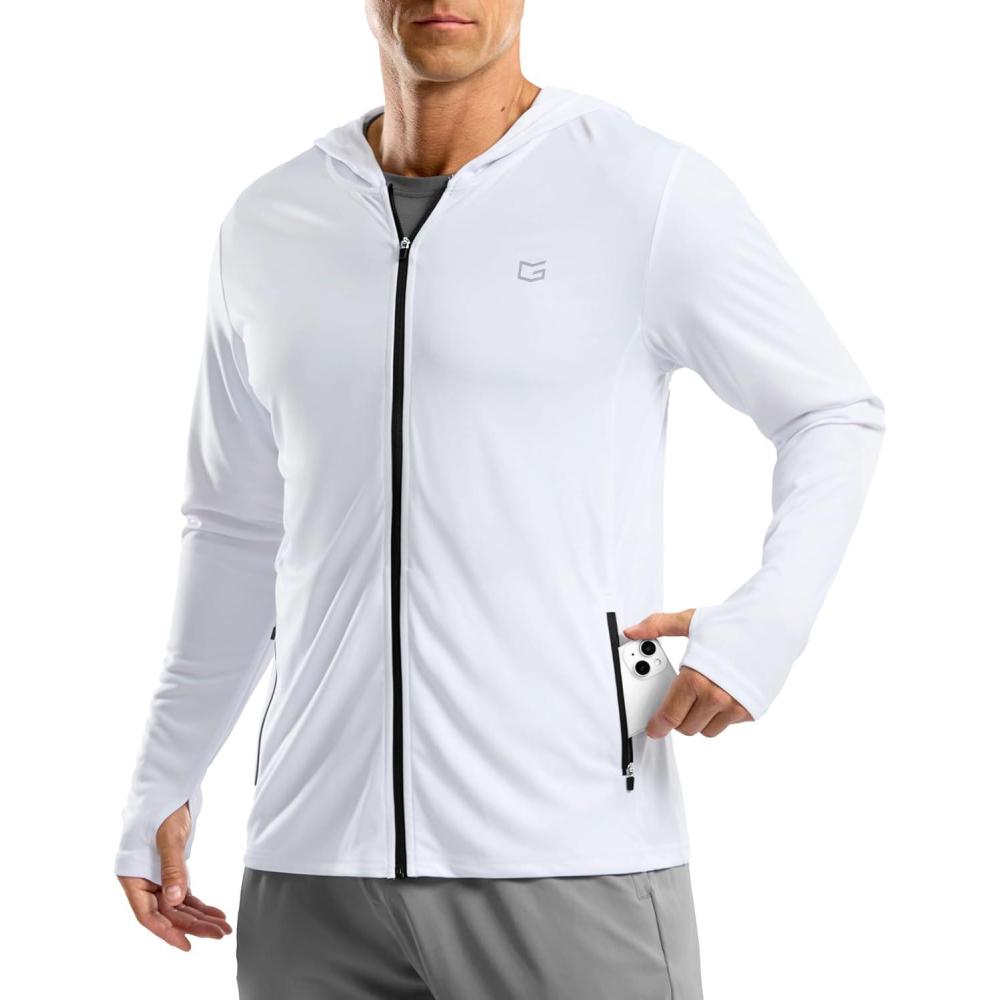 G Gradual Men’s UPF 50+ Sun Protection Hoodie Jacket Lightweight Full Zip Hoodies Long Sleeve Shirts for Men Hiking Fishing(White)