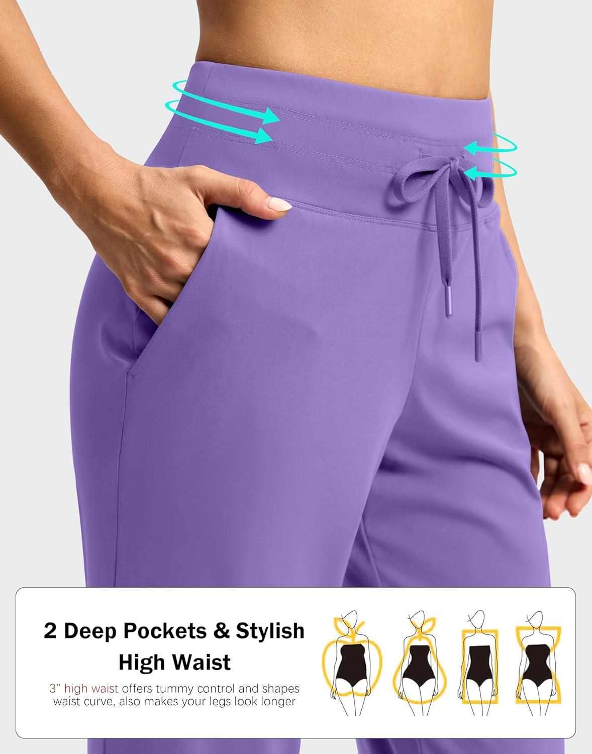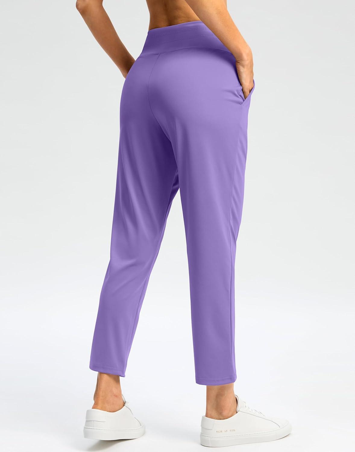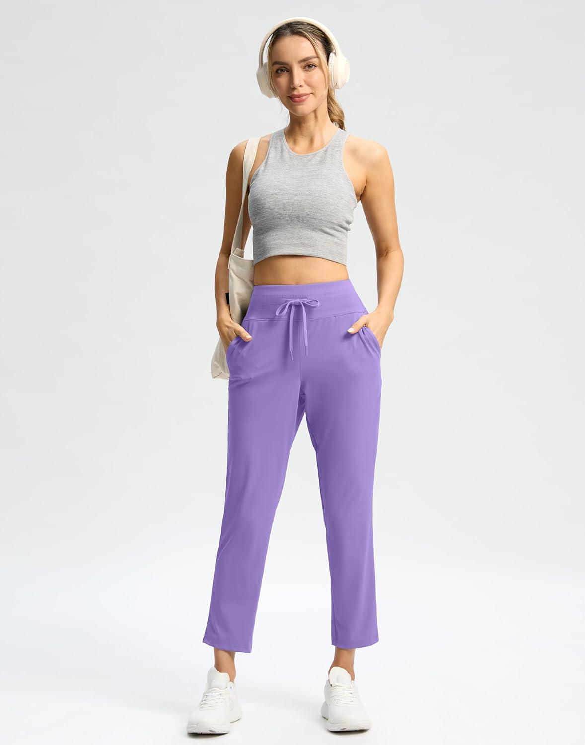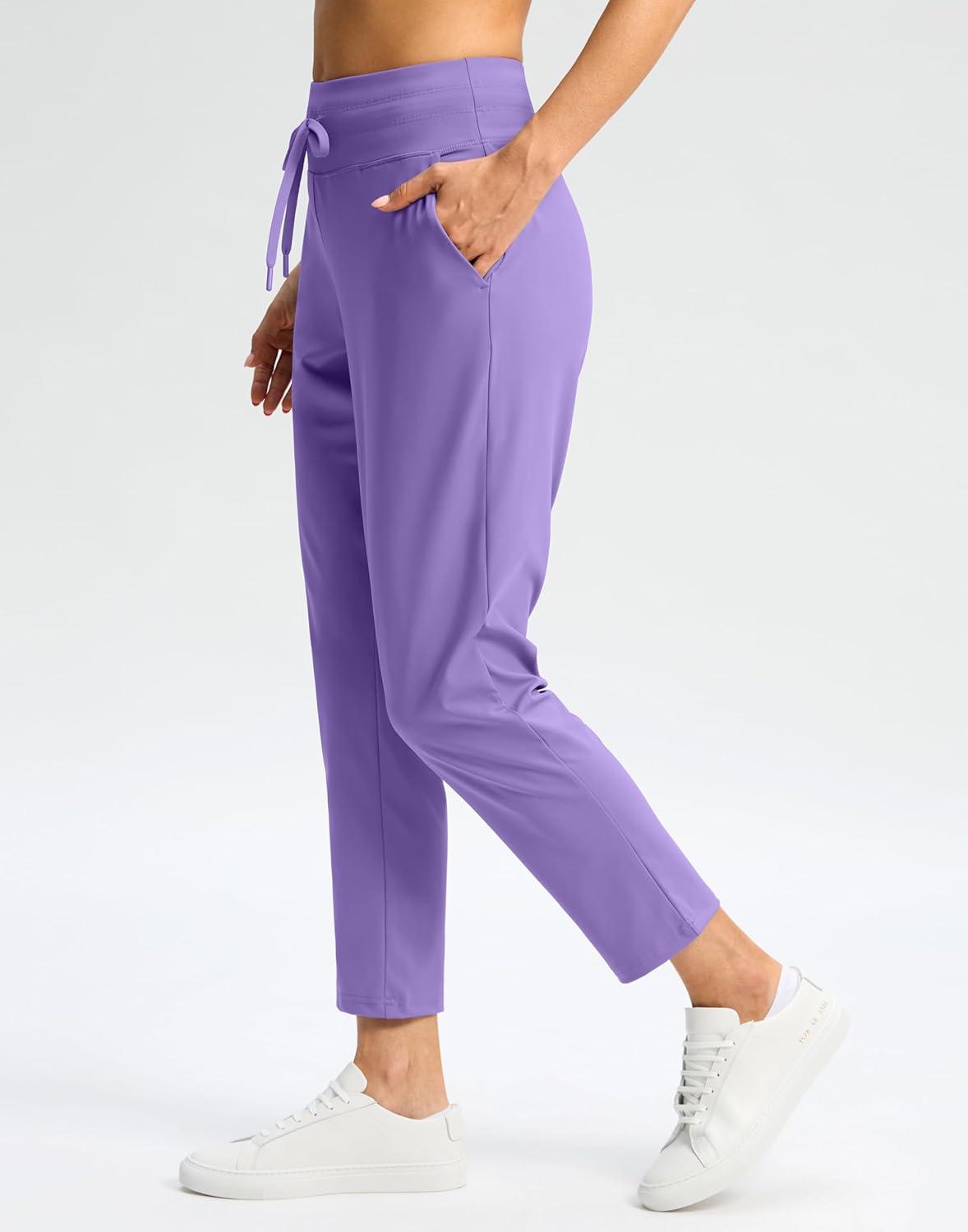 G Gradual Pants for Women High Waisted Ankle Pants 2 Pockets 7/8 Athletic Pants with Drawstring for Golf Travel Casual(Dark Lavender)