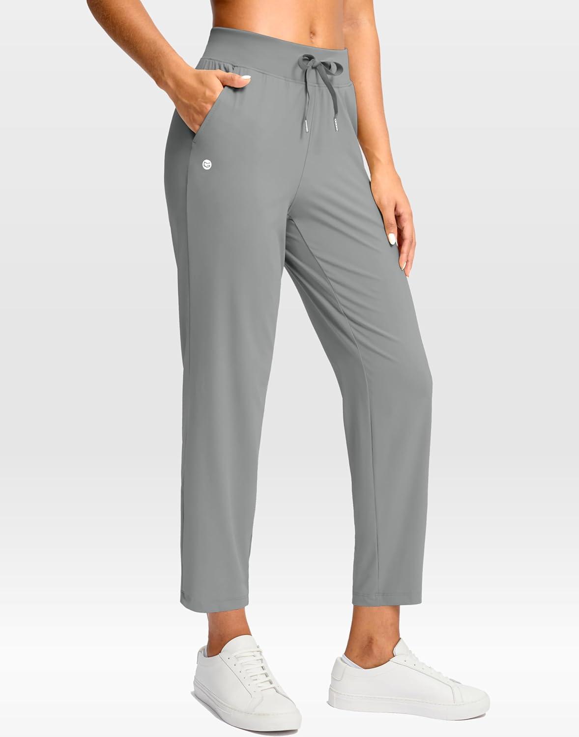 G Gradual Petite Pants for Women 24"/26" Ankle Pants 2 Pockets Stretchy 7/8 Sweatpants for Golf Travel Athletic Casual(Bright Grey)