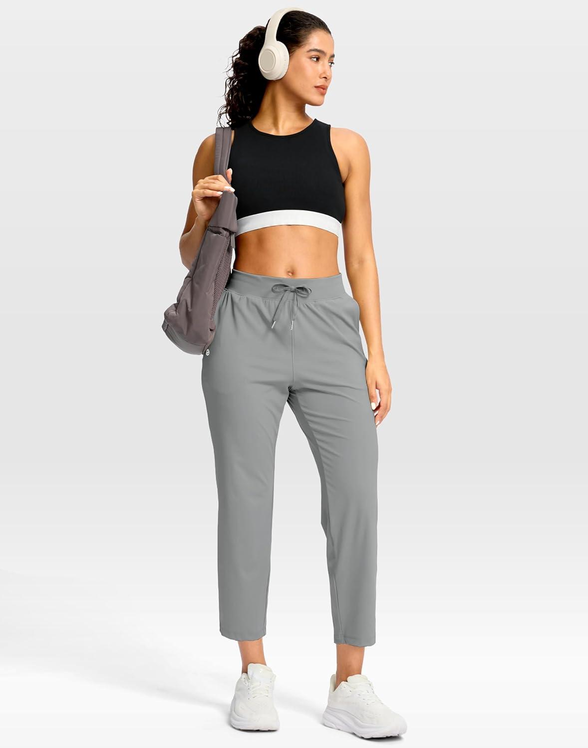 imageG Gradual Petite Pants for Women 24quot26quot Ankle Pants 2 Pockets Stretchy 78 Sweatpants for Golf Travel Athletic CasualBright Grey
