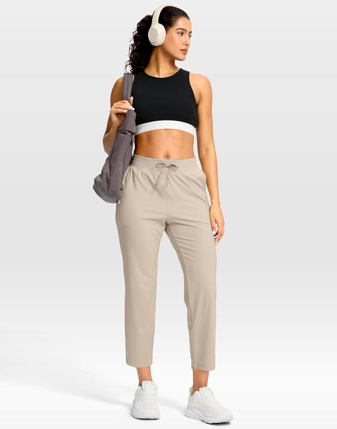 imageG Gradual Petite Pants for Women 24quot26quot Ankle Pants 2 Pockets Stretchy 78 Sweatpants for Golf Travel Athletic CasualDusty White