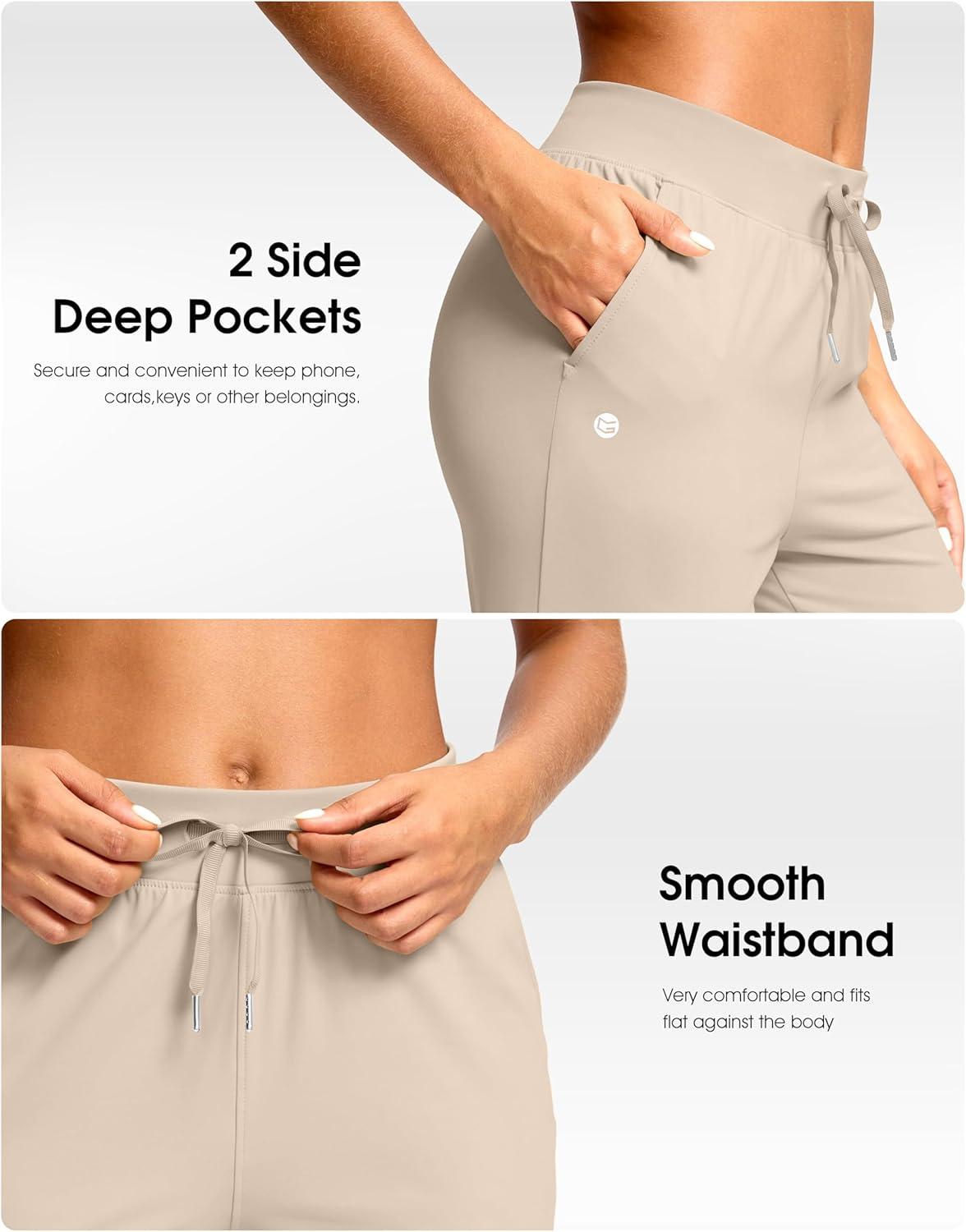 G Gradual Petite Pants for Women 24″/26″ Ankle Pants 2 Pockets Stretchy 7/8 Sweatpants for Golf Travel Athletic Casual(Khaki)