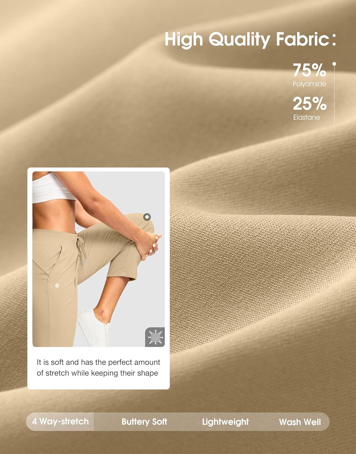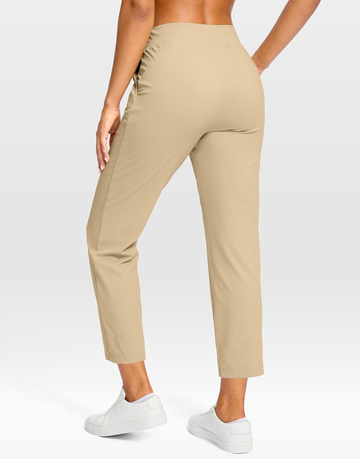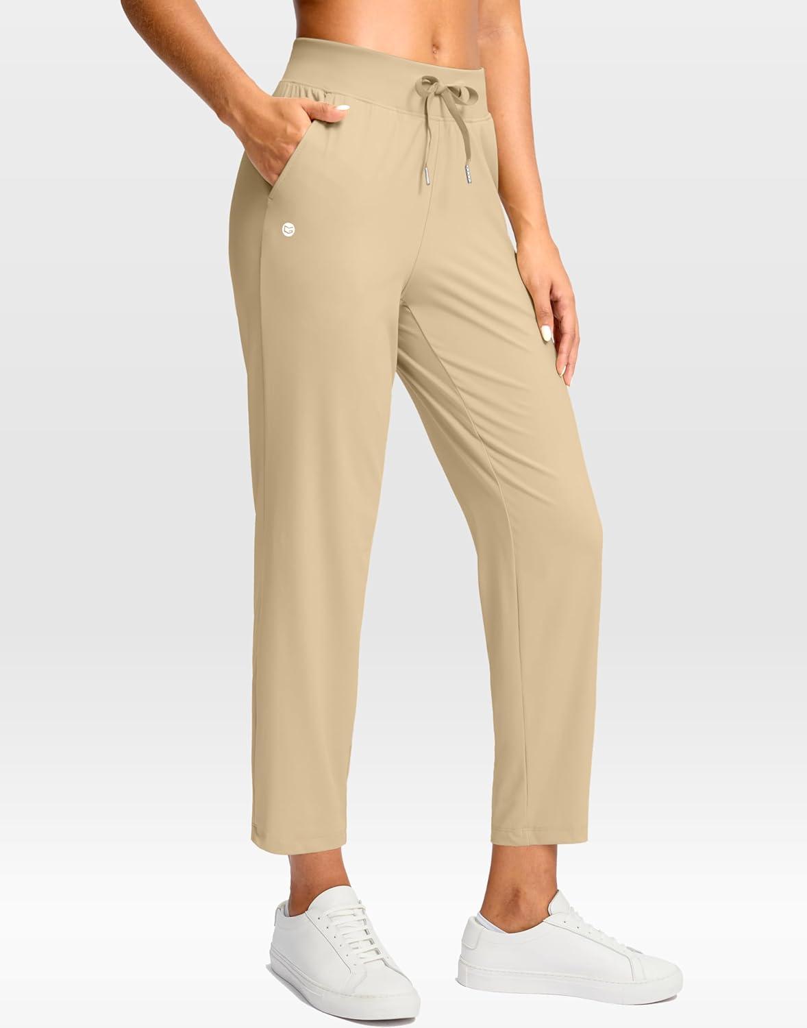 G Gradual Petite Pants for Women 24"/26" Ankle Pants 2 Pockets Stretchy 7/8 Sweatpants for Golf Travel Athletic Casual(Khaki)