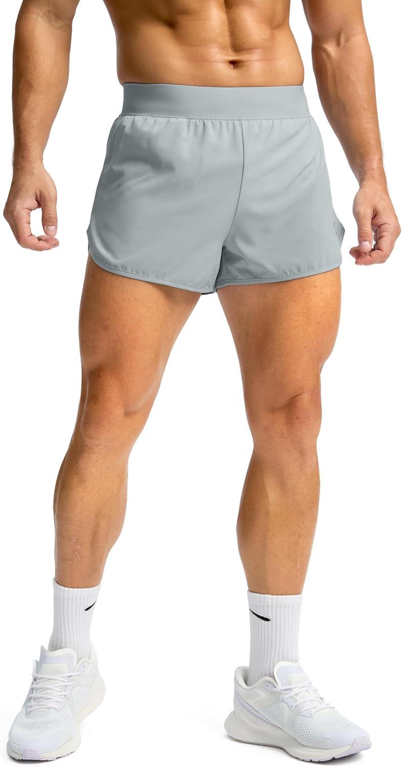 G Gradual Running Shorts for Men 3 Inch Lighweight Quick Dry Workout Gym Athletic Jogging Shorts with Inner Key Pocket(New Light Grey)