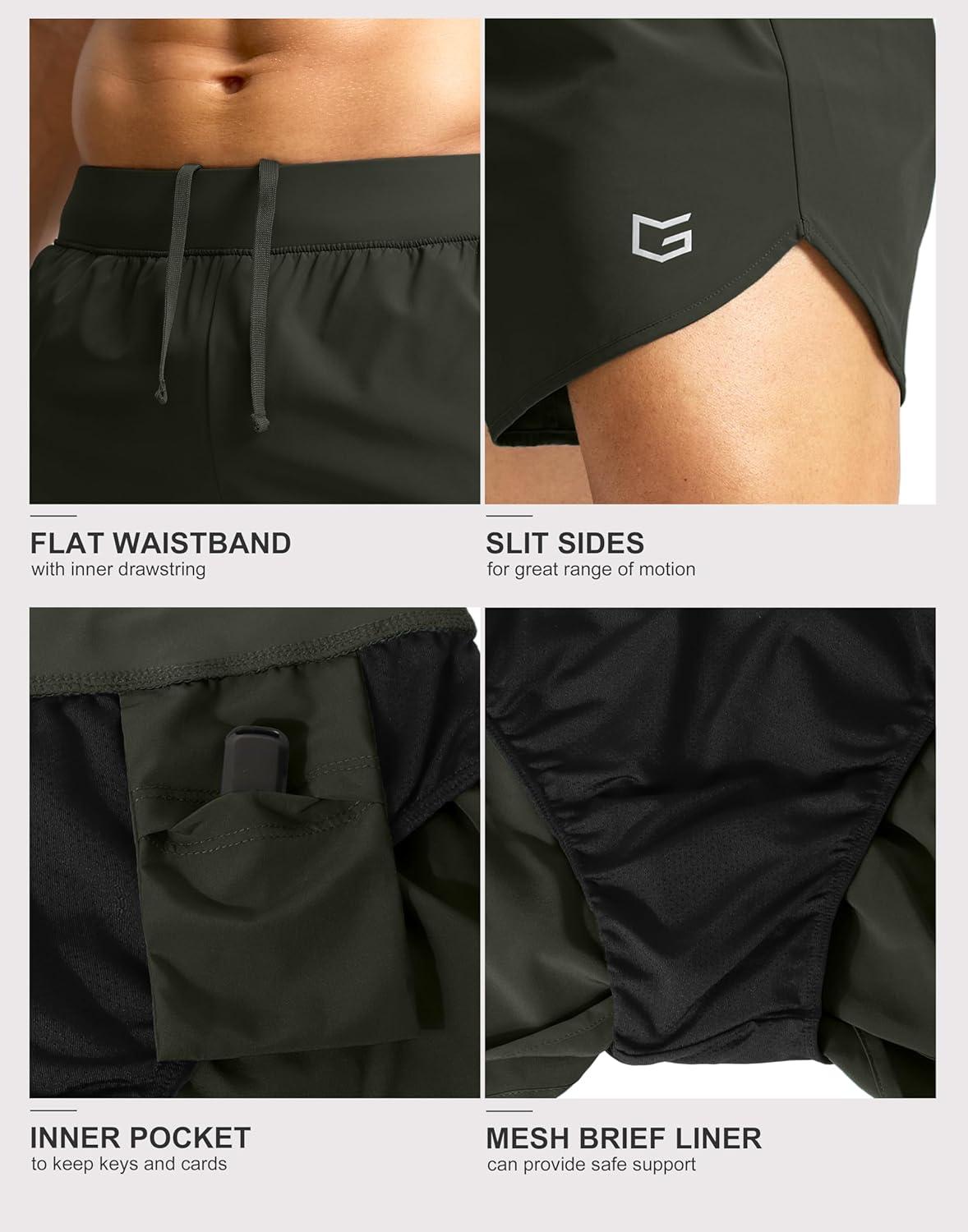 G Gradual Running Shorts for Men 3 Inch Lighweight Quick Dry Workout Gym Athletic Jogging Shorts with Inner Key Pocket(Olive Green)