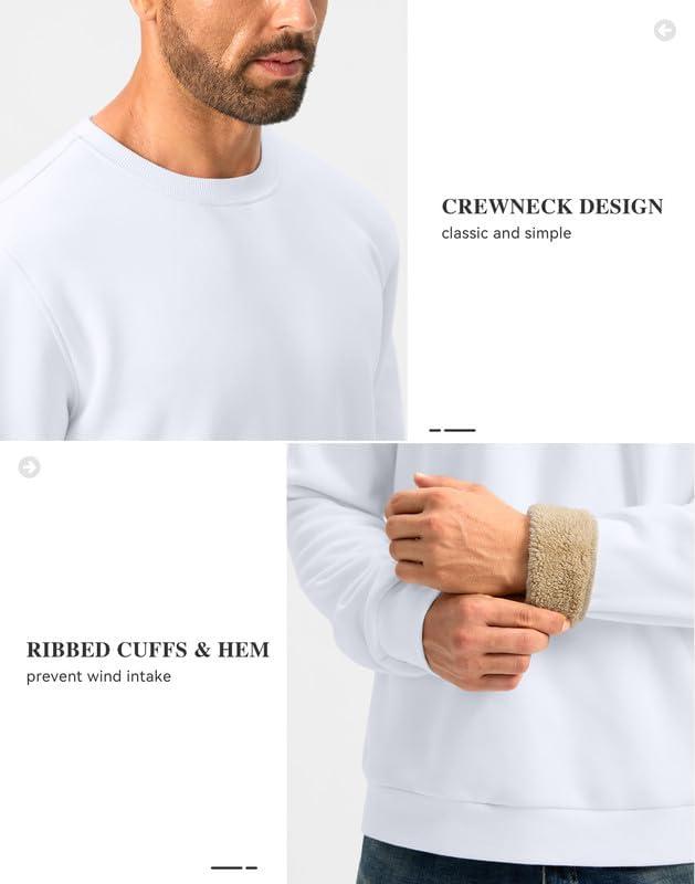 G Gradual Sherpa Lined Sweatshirts for Men Fleece Crewneck Sweatshirt Pullover Warm Shirts for Winter(White)