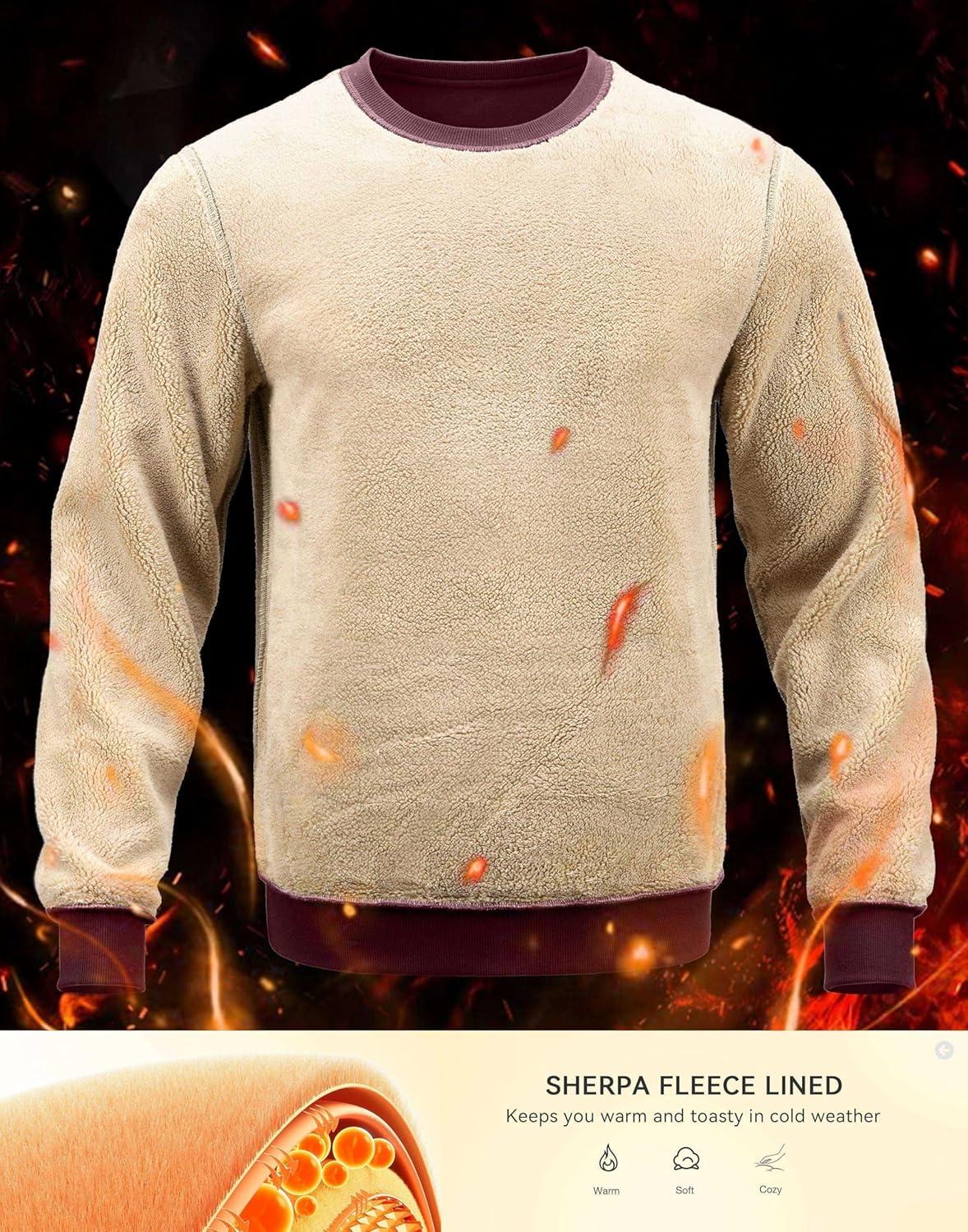 G Gradual Sherpa Lined Sweatshirts for Men Fleece Crewneck Sweatshirt Pullover Warm Shirts for Winter(White)