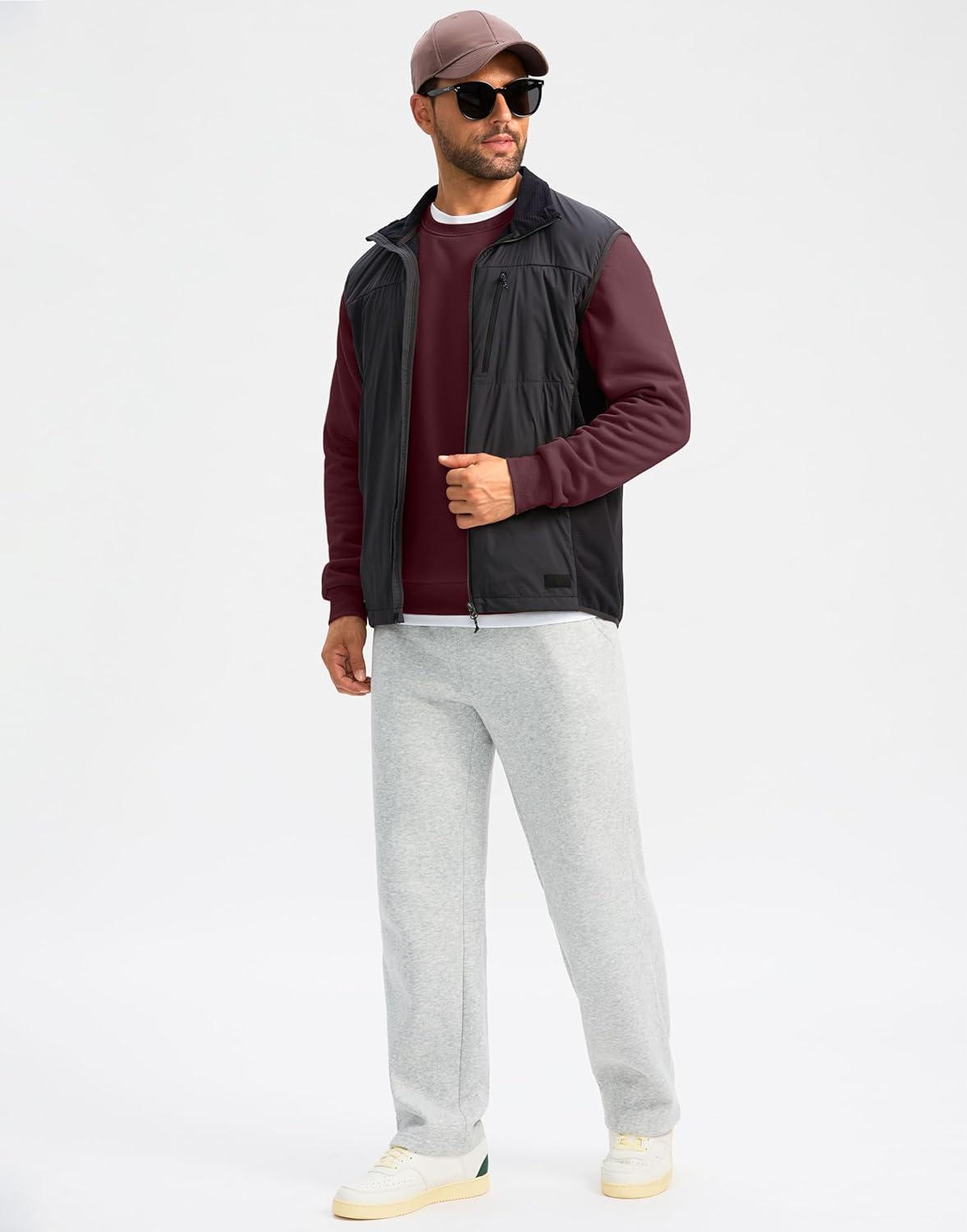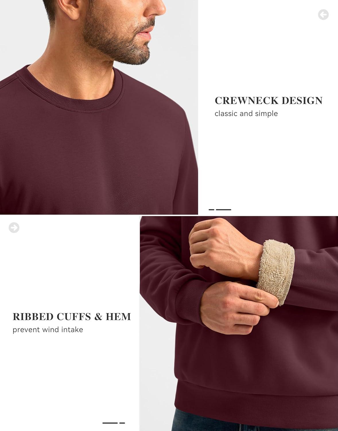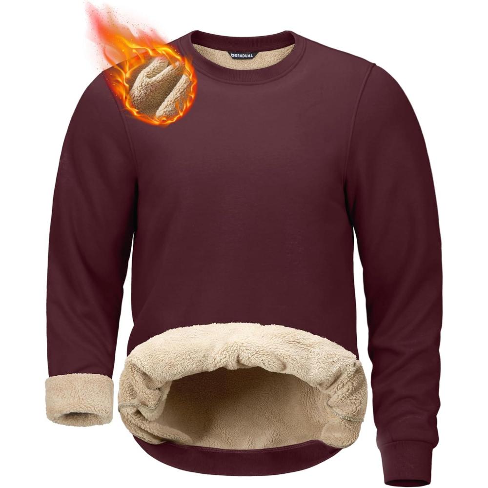 G Gradual Sherpa Lined Sweatshirts for Men Fleece Crewneck Sweatshirt Pullover Warm Shirts for Winter(Wine)