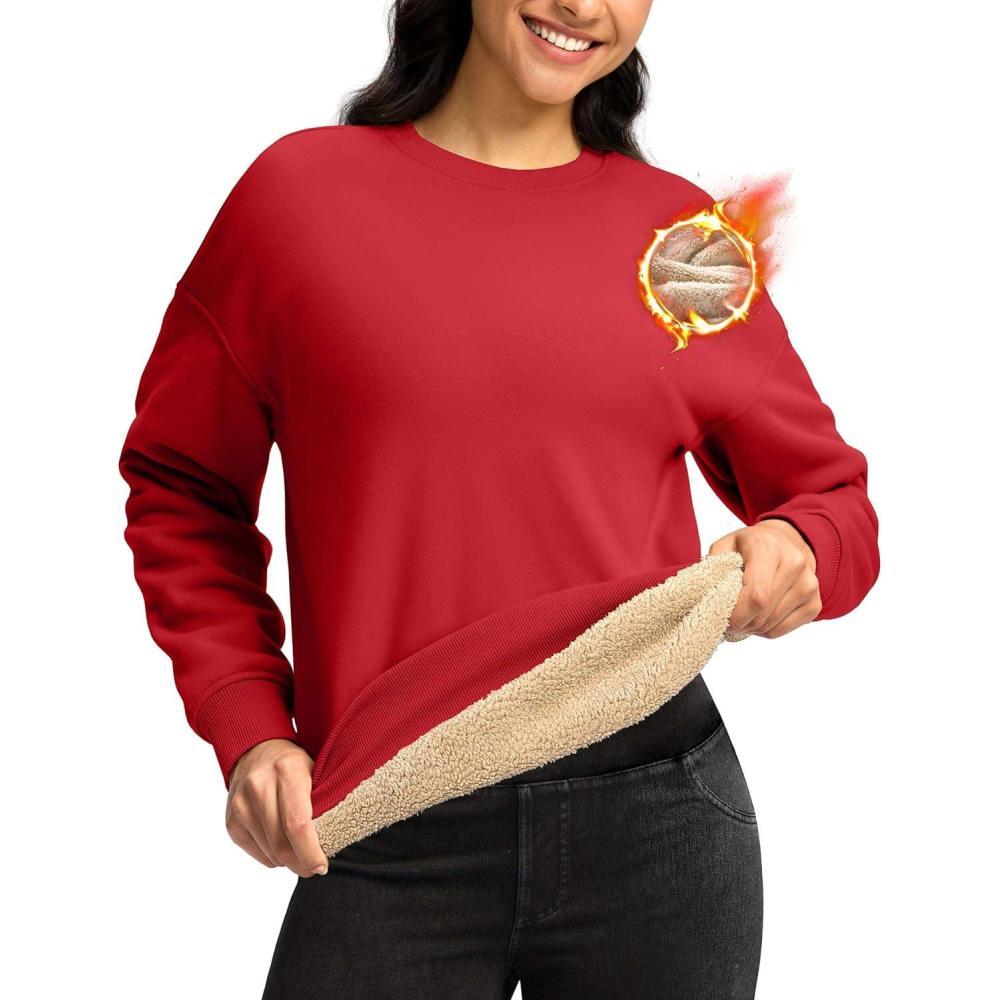 G Gradual Sherpa Sweatshirt for Women Fleece Sweatshirts Crewneck Pullover Warm Sweaters for Winter(Red)