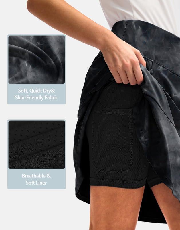 G Gradual Skorts Skirts for Women with 5 Pockets 20″ Knee Length Golf Skirt Modest Long Tennis Athletic Skirts for Women(Black Tie-dye)