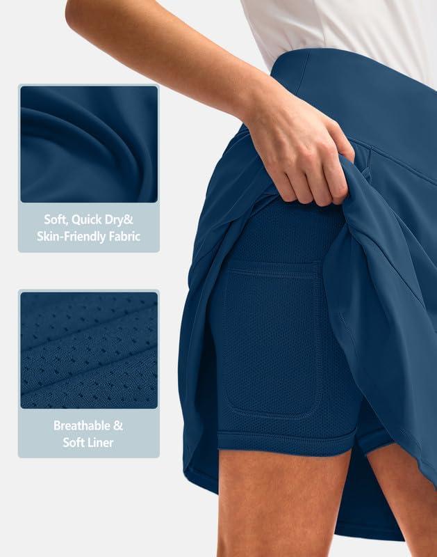 G Gradual Skorts Skirts for Women with 5 Pockets 20″ Knee Length Golf Skirt Modest Long Tennis Athletic Skirts for Women(Blue)