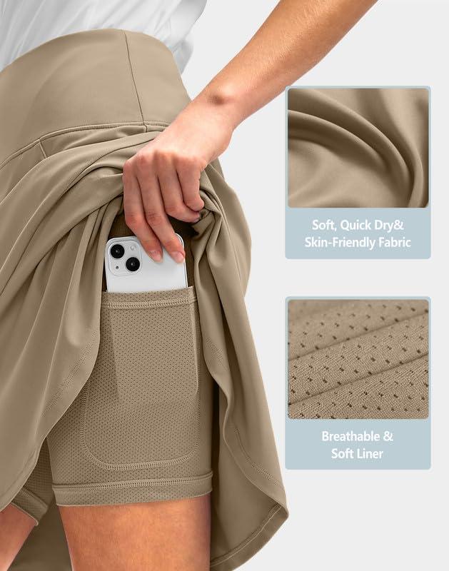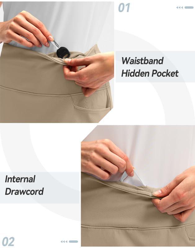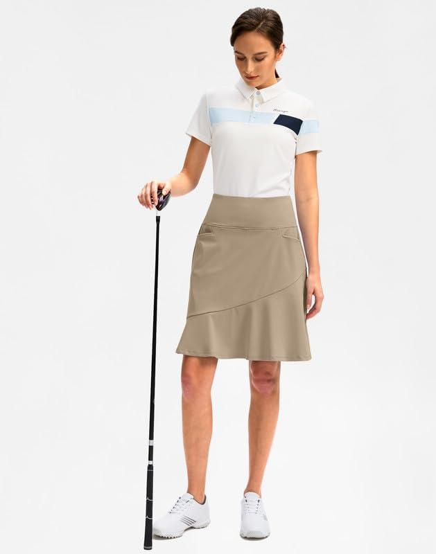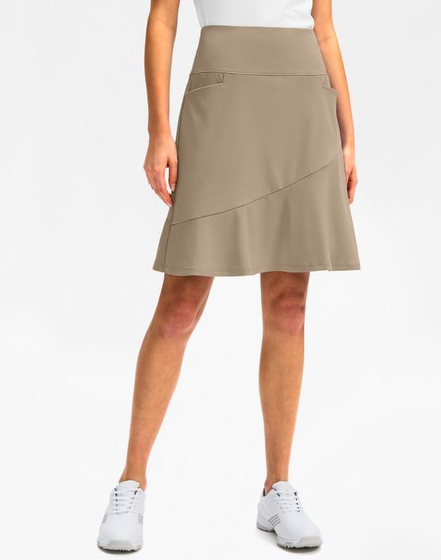 G Gradual Skorts Skirts for Women with 5 Pockets 20″ Knee Length Golf Skirt Modest Long Tennis Athletic Skirts for Women(Light Khaki)