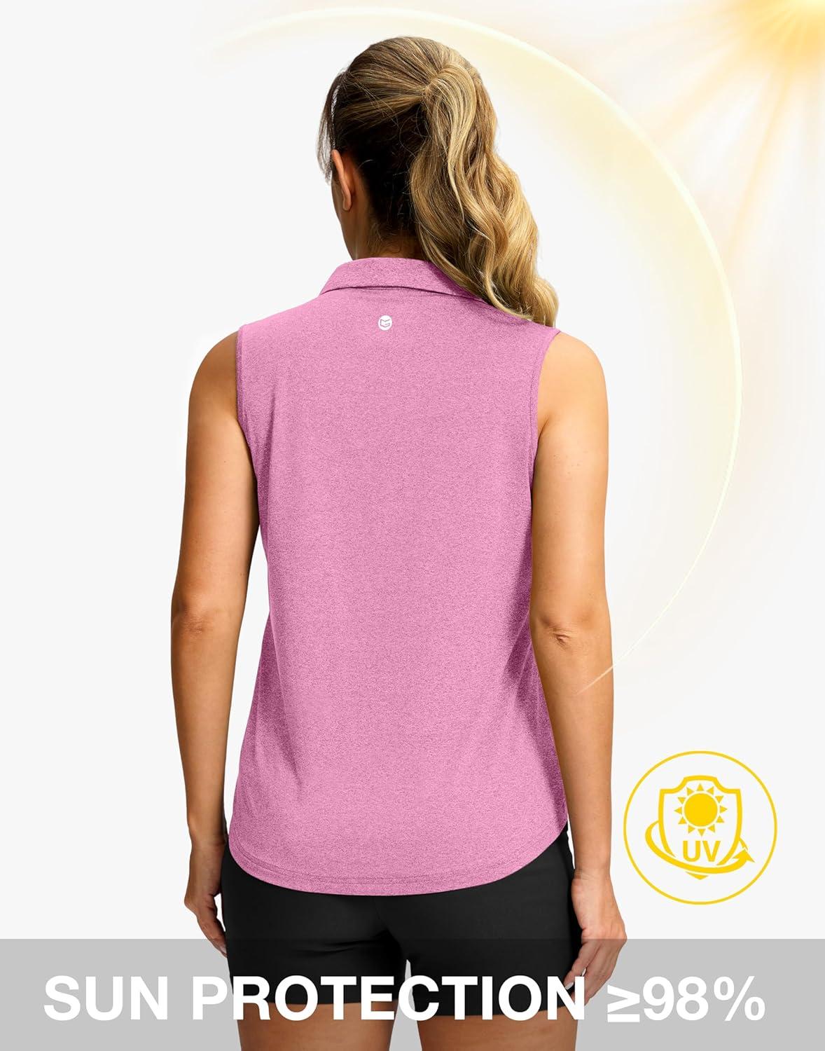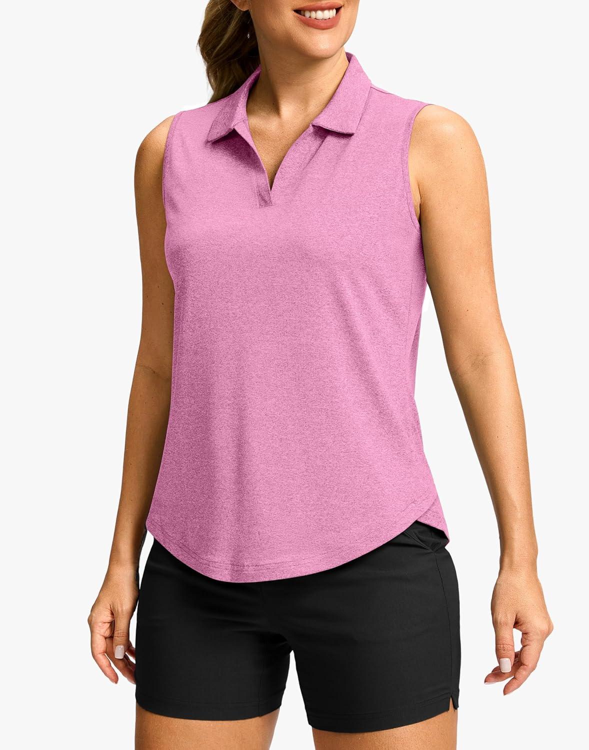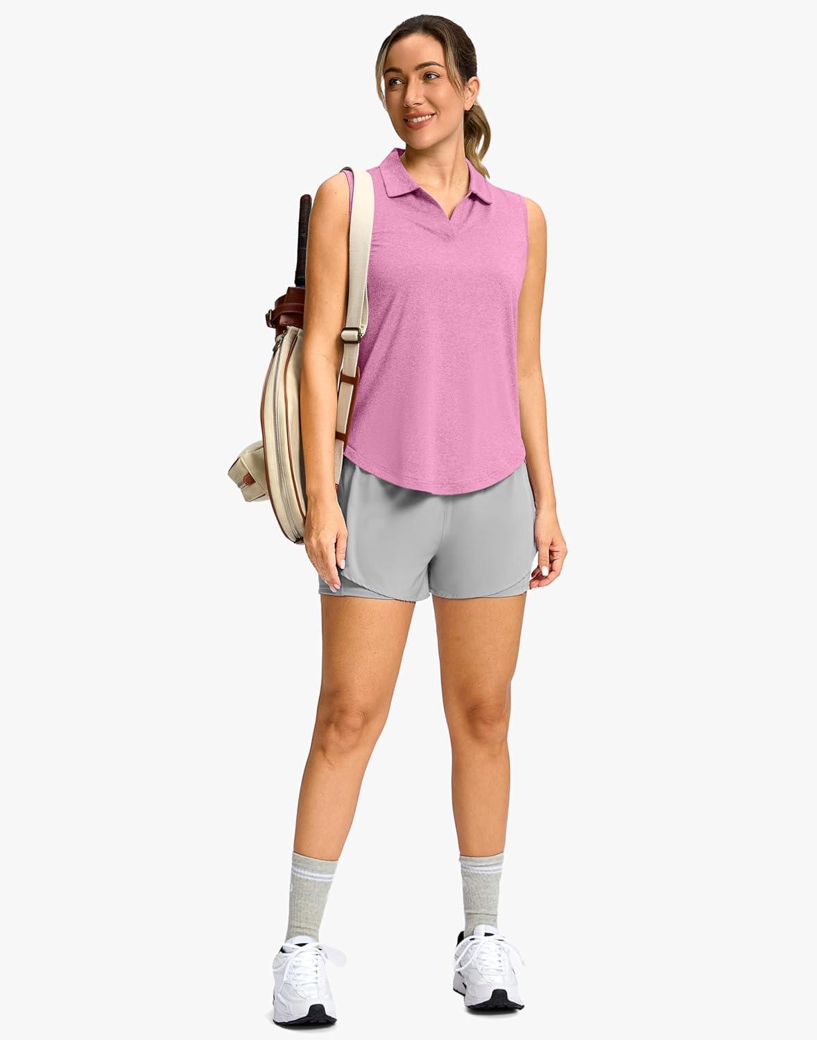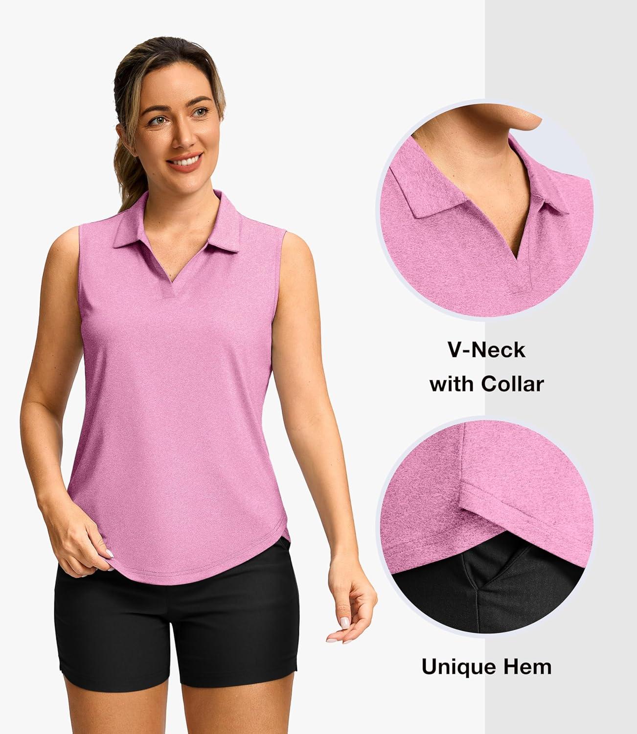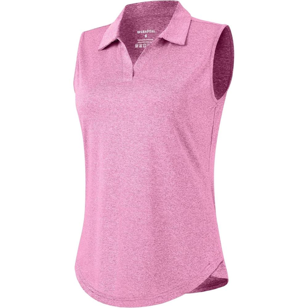 G Gradual Sleeveless Golf Shirts for Women Collared V Neck Tennis Tank Top Cooling Polo UPF 50+ Quick Dry Lightweight(Heather Light Rose)