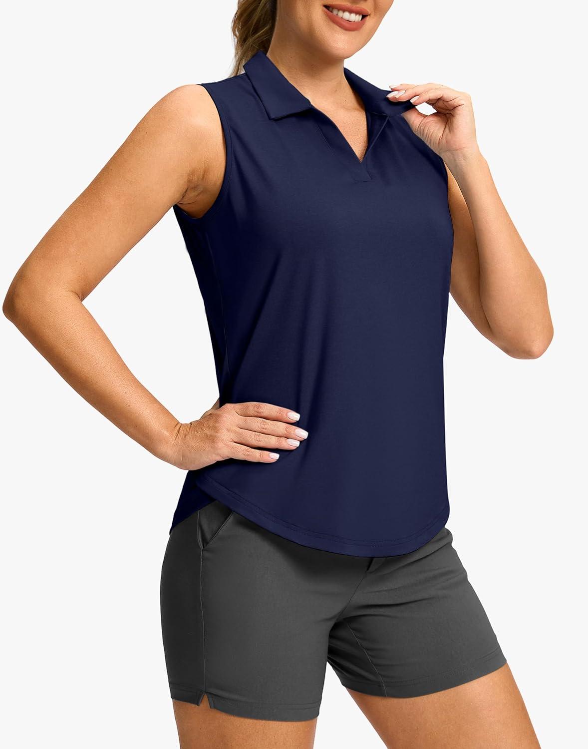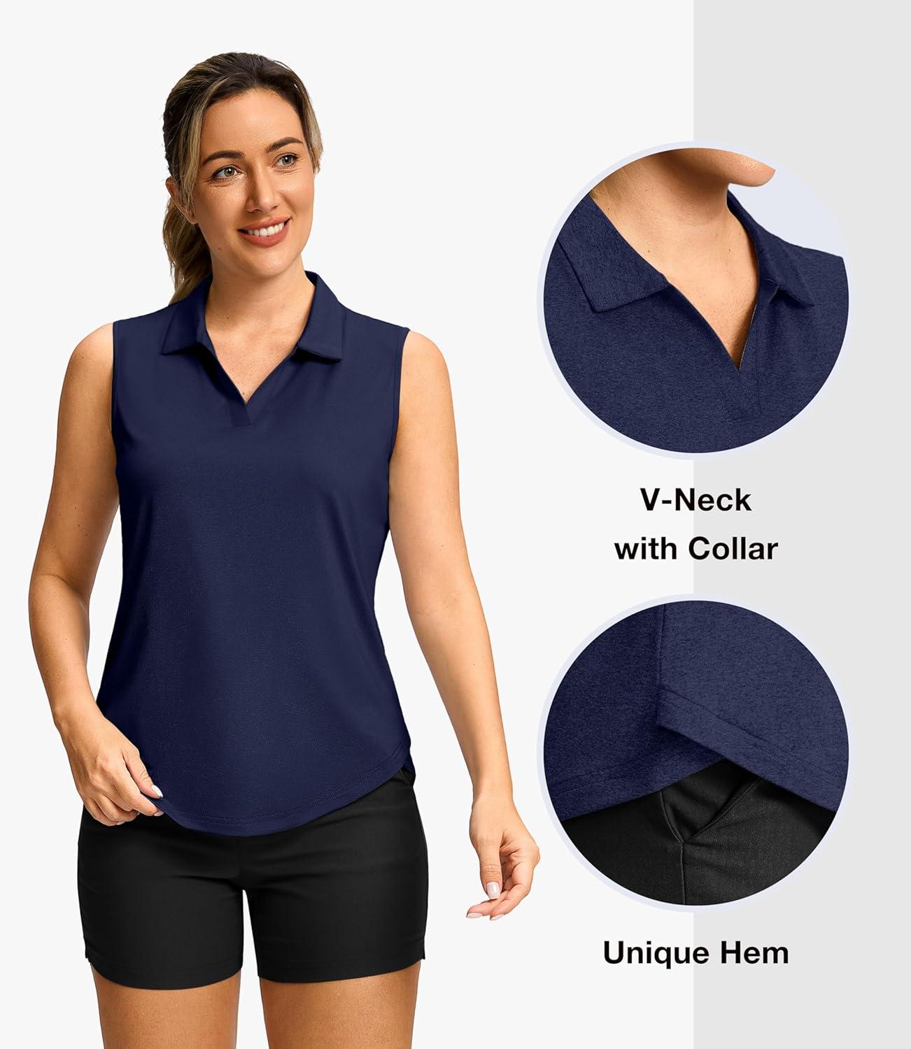G Gradual Sleeveless Golf Shirts for Women Collared V Neck Tennis Tank Top Cooling Polo UPF 50+ Quick Dry Lightweight(Heather Navy)