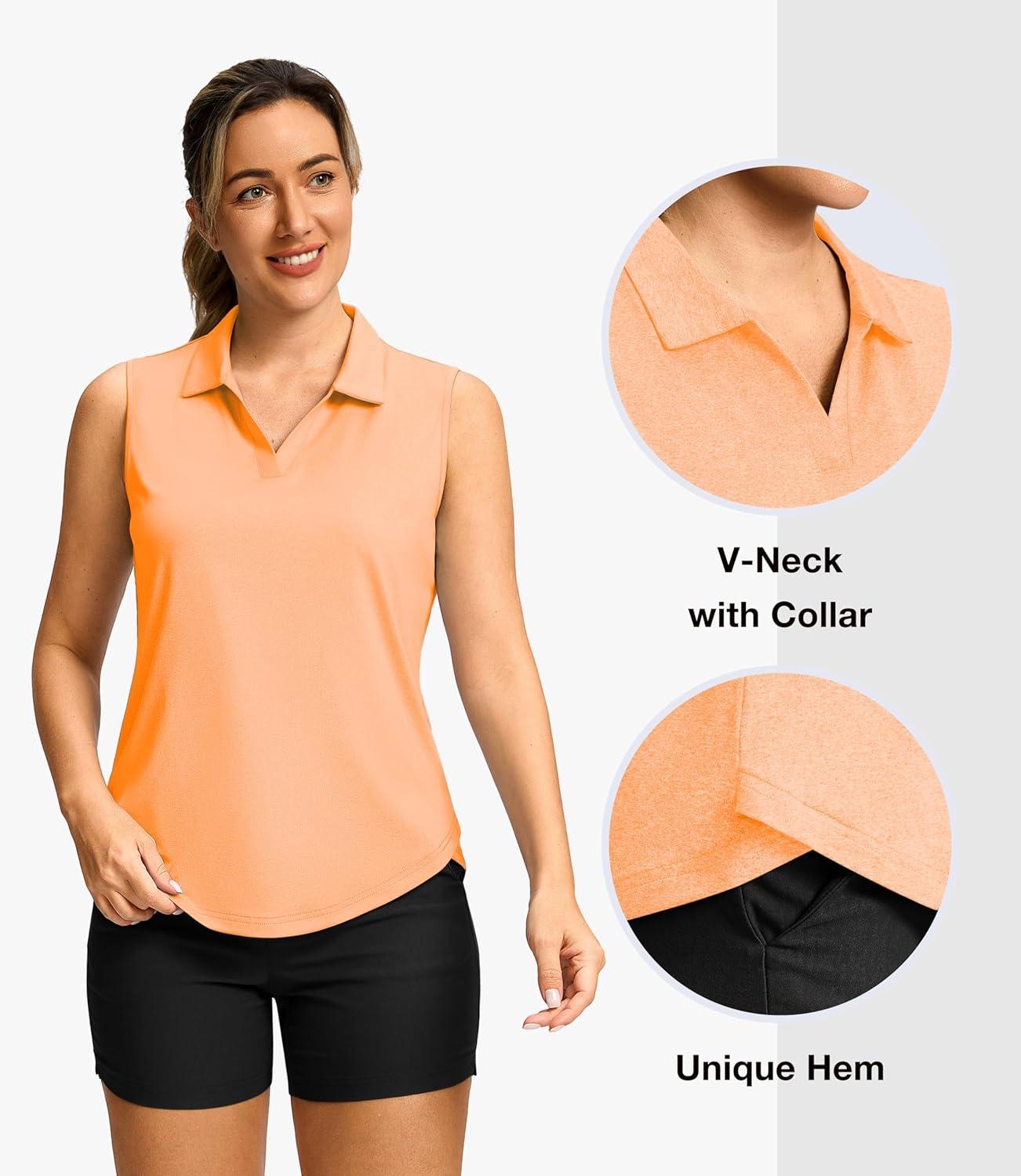G Gradual Sleeveless Golf Shirts for Women Collared V Neck Tennis Tank Top Cooling Polo UPF 50+ Quick Dry Lightweight(Heather Orange)