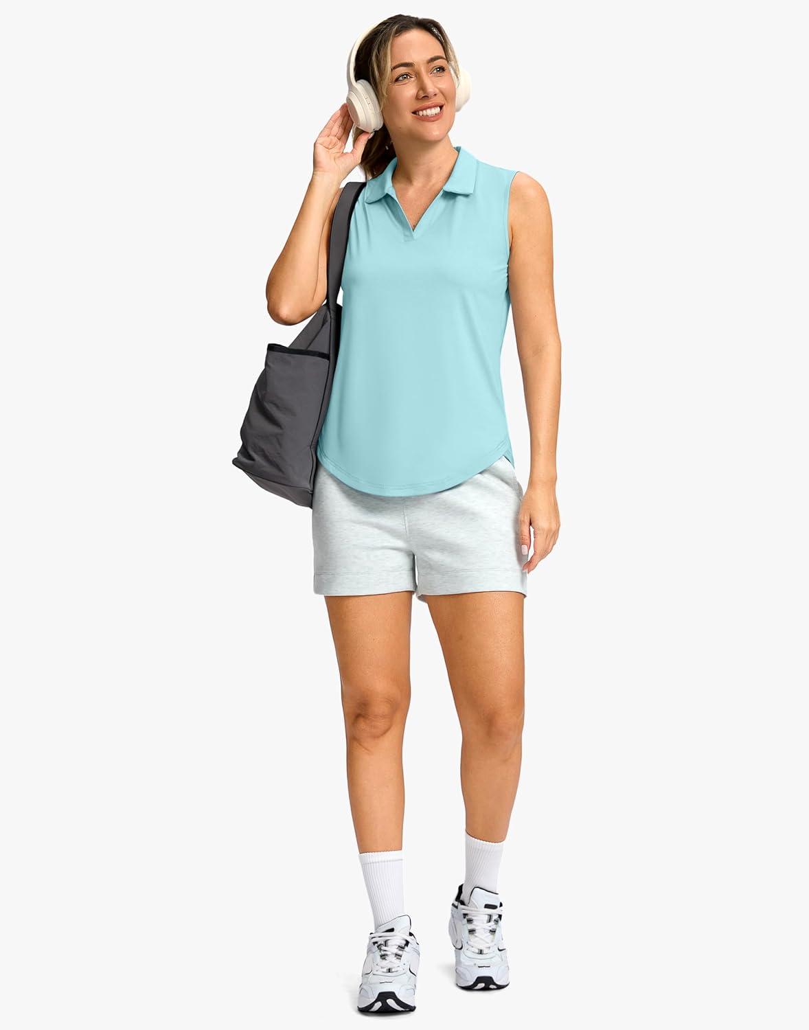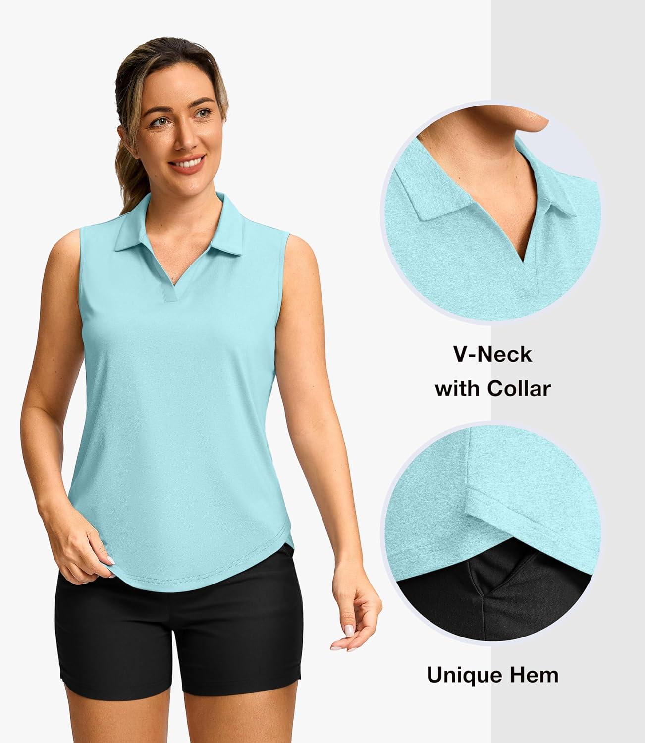 G Gradual Sleeveless Golf Shirts for Women Collared V Neck Tennis Tank Top Cooling Polo UPF 50+ Quick Dry Lightweight(Heather Sky Blue)