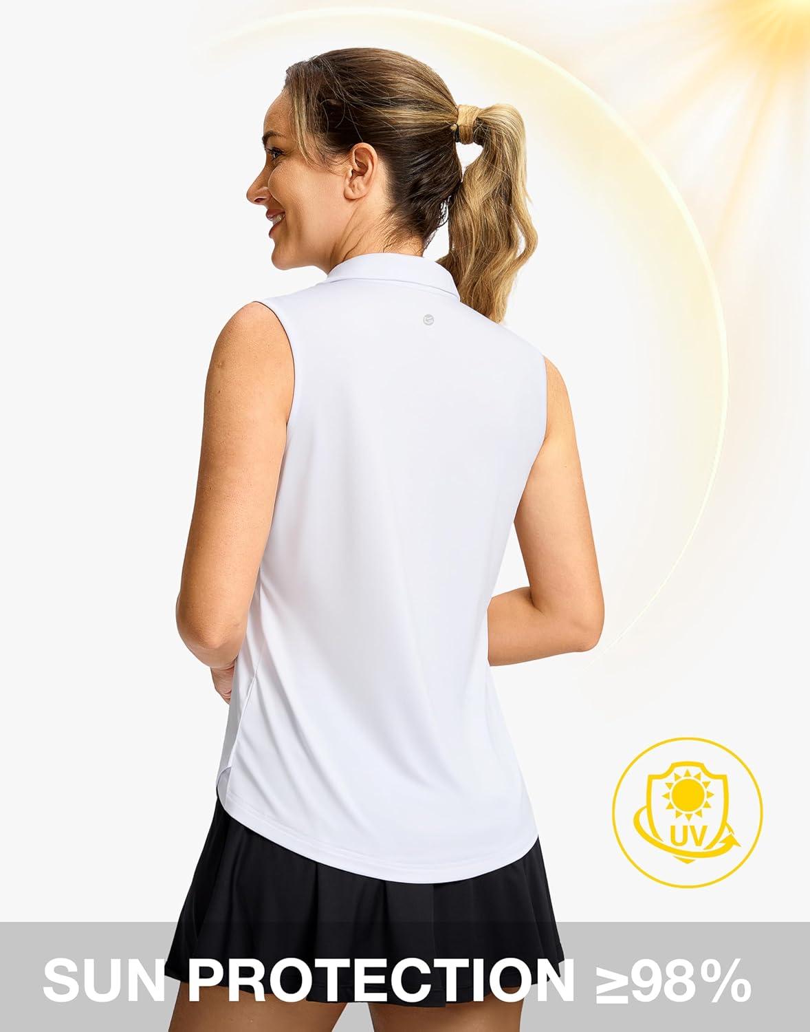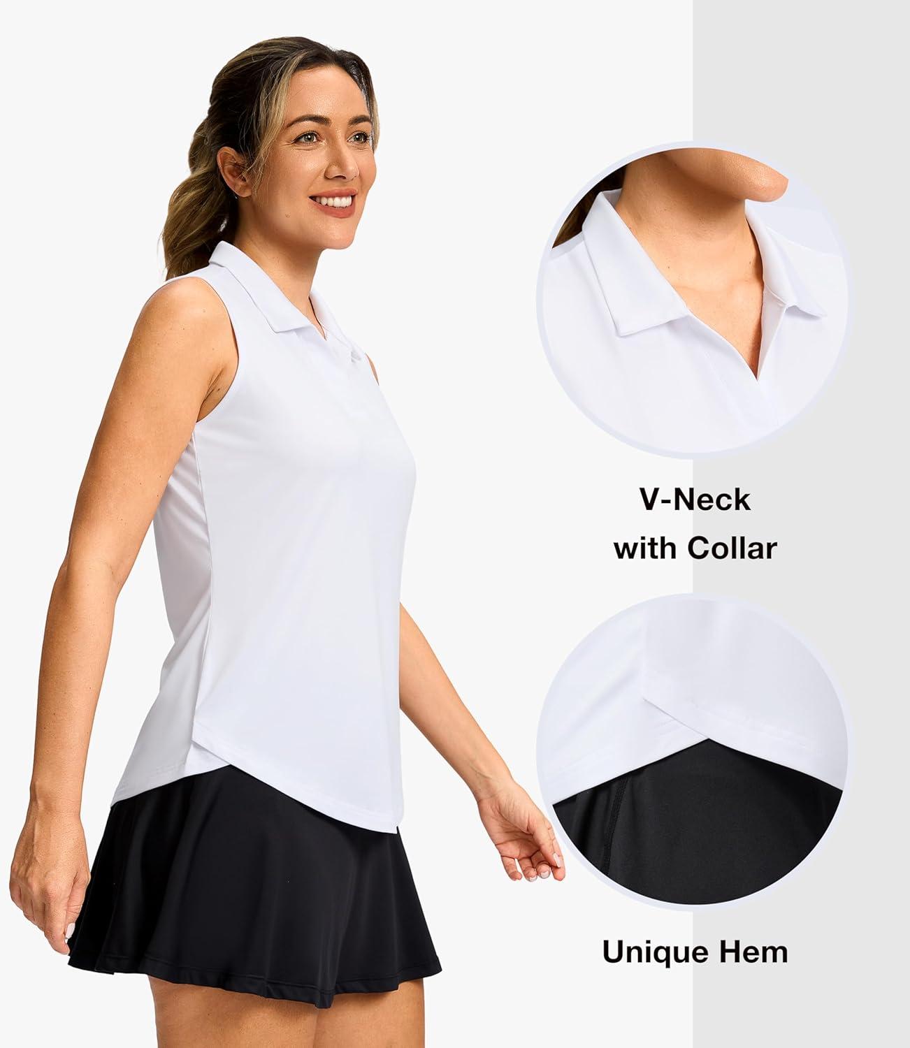 G Gradual Sleeveless Golf Shirts for Women Collared V Neck Tennis Tank Top Cooling Polo UPF 50+ Quick Dry Lightweight(Heather White)