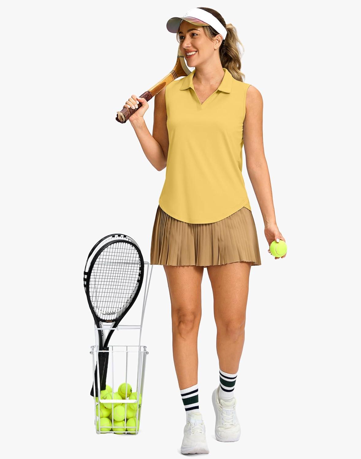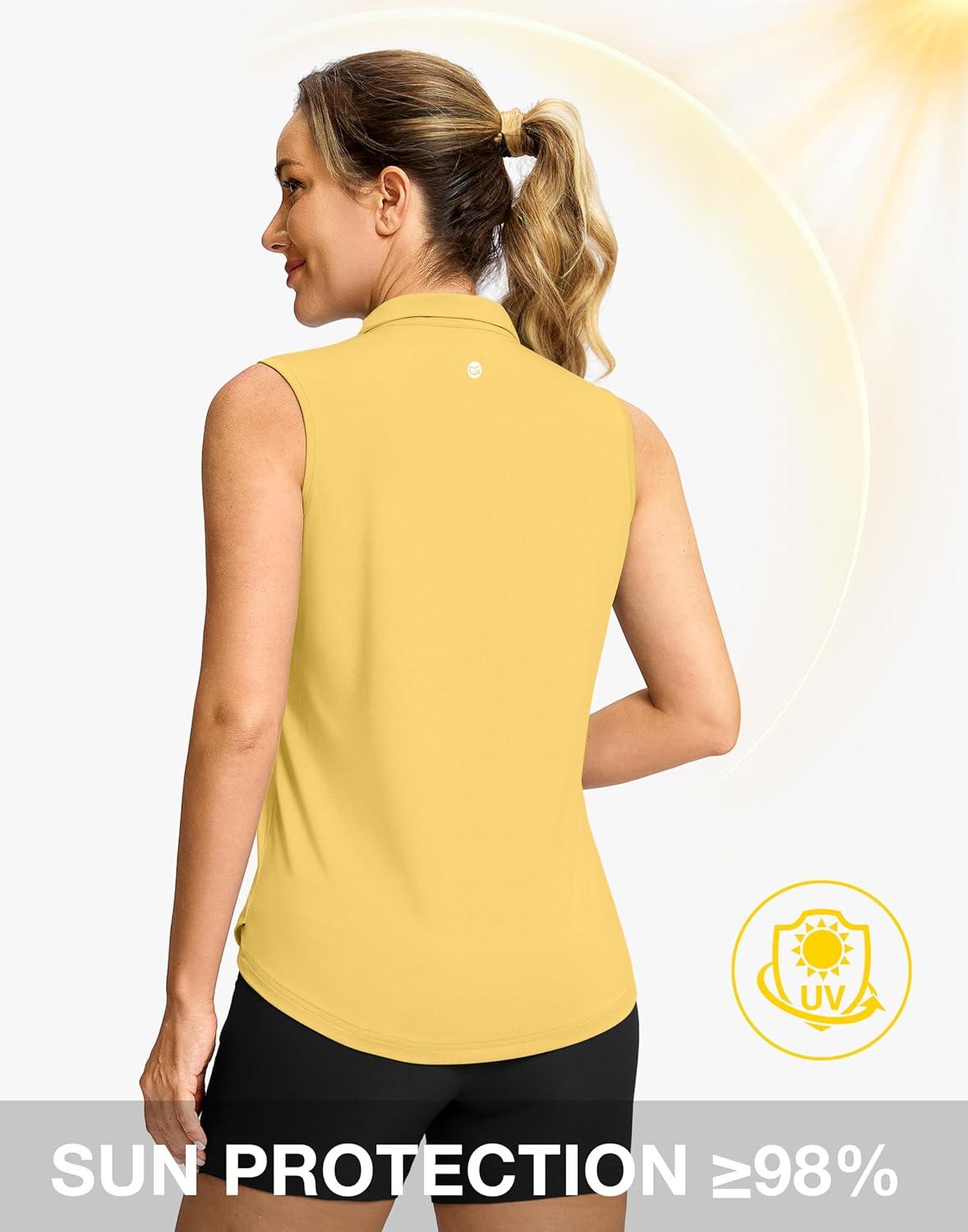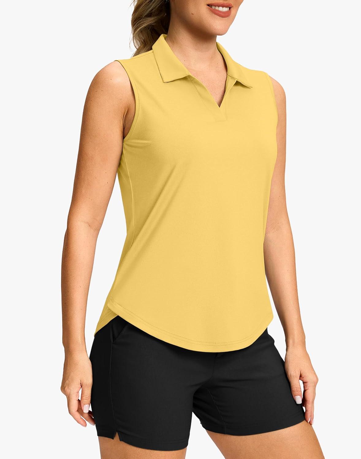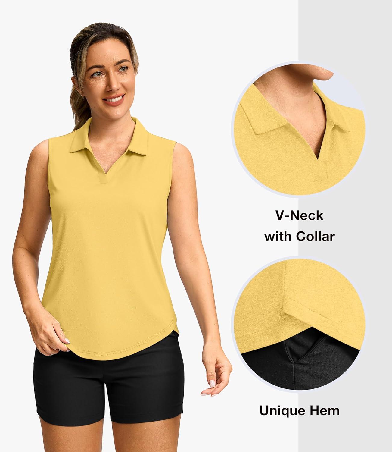 G Gradual Sleeveless Golf Shirts for Women Collared V Neck Tennis Tank Top Cooling Polo UPF 50+ Quick Dry Lightweight(Heather Yellow)