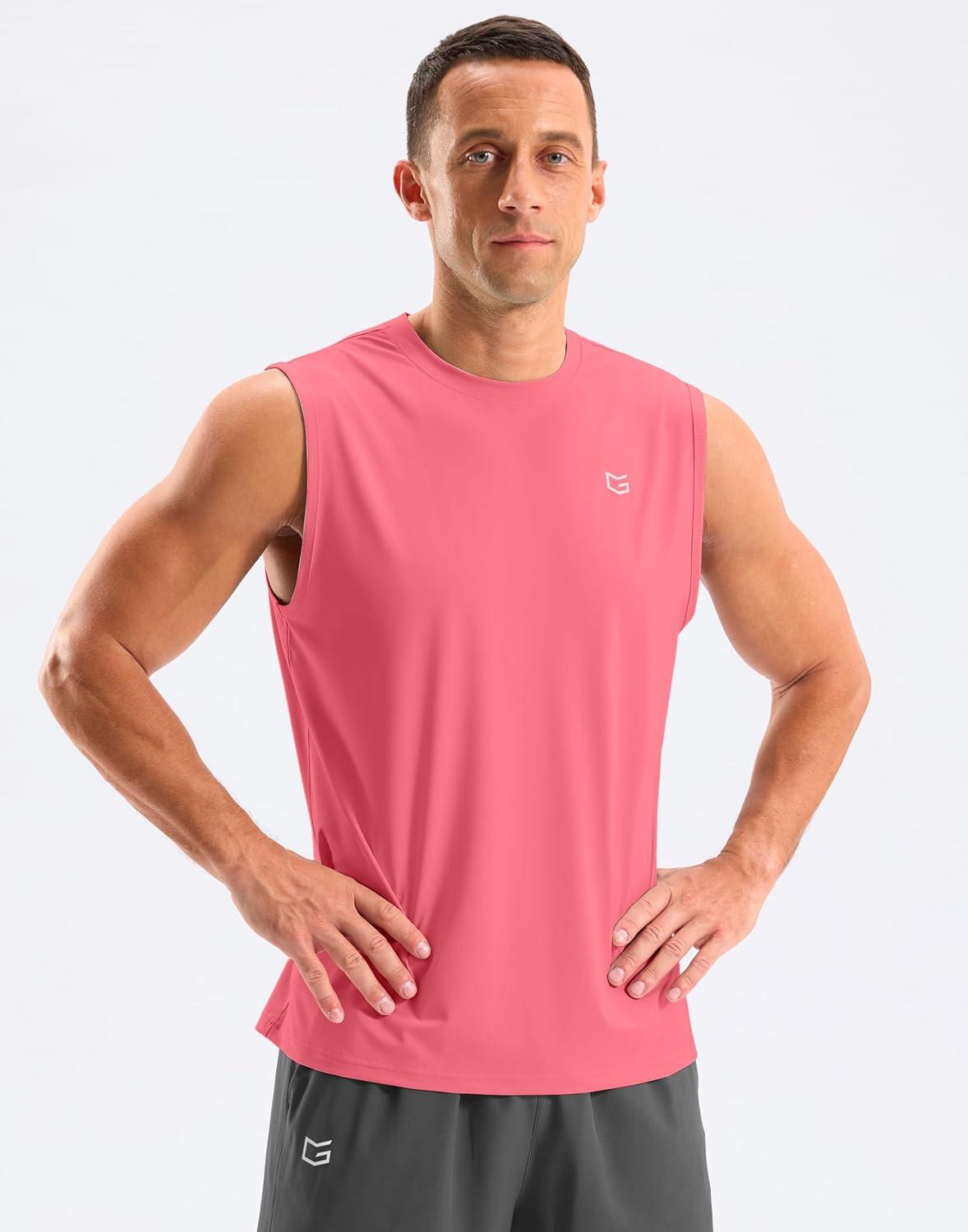 G Gradual Sleeveless Shirts for Men Workout Tank Tops Moisture Wicking Mens Muscle Shirt for Gym, Beach, Summer Casual(Pink)