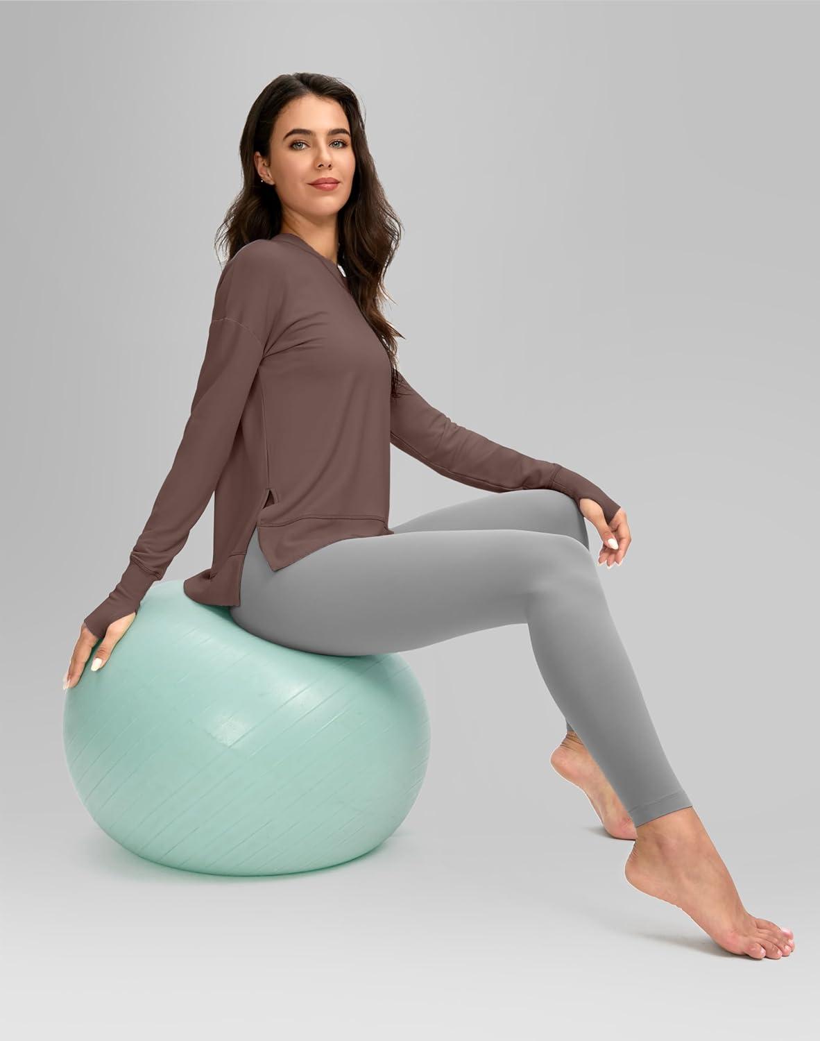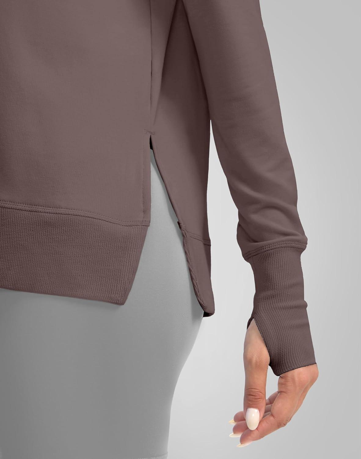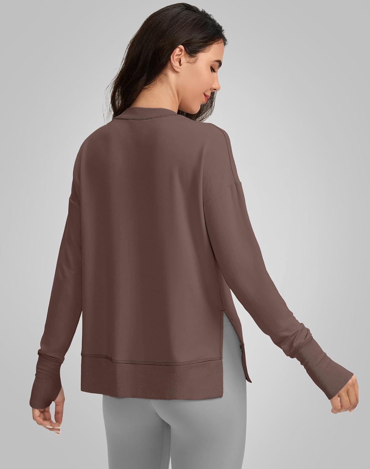 imageG Gradual Sweatshirt for Women Buttery Soft Yoga Tops Crewneck Modal Pullover Shirts Side Slit Thumb HolesRed Brown