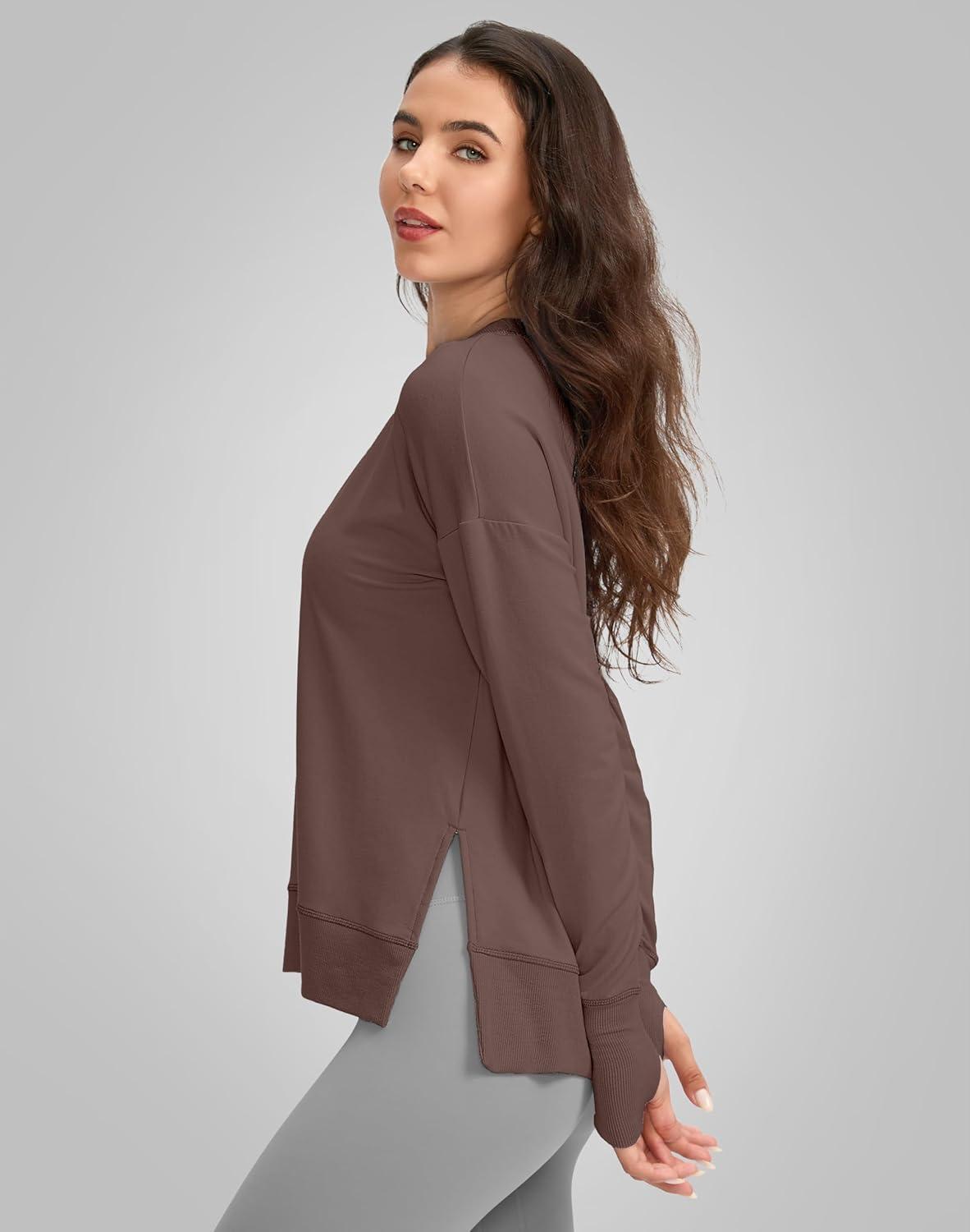 G Gradual Sweatshirt for Women Buttery Soft Yoga Tops Crewneck Modal Pullover Shirts Side Slit Thumb Holes(Red Brown)