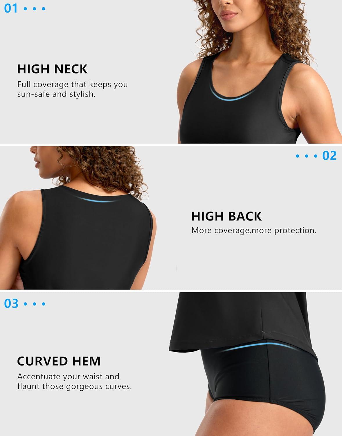 imageG Gradual Tankini Tops for Women High Neck Swimsuits Swim Top Modest Bathing Suit Swimwear Tank Top only No BottomBlack