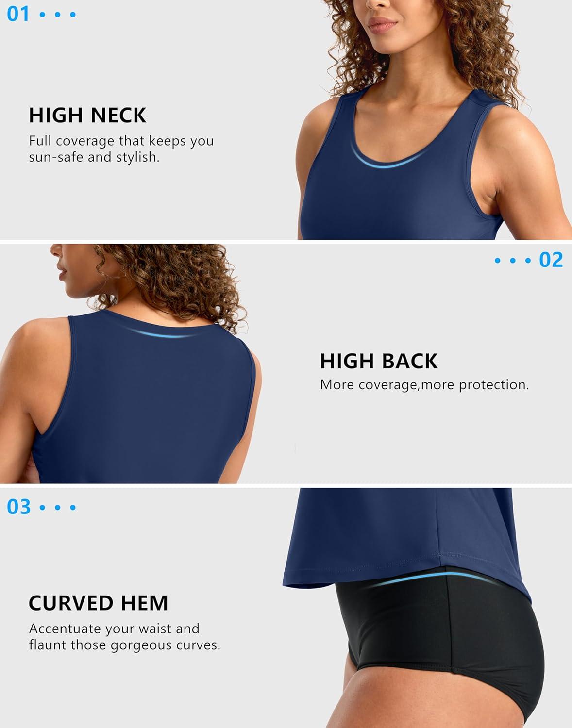 G Gradual Tankini Tops for Women High Neck Swimsuits Swim Top Modest Bathing Suit Swimwear Tank Top only No Bottom(Navy)