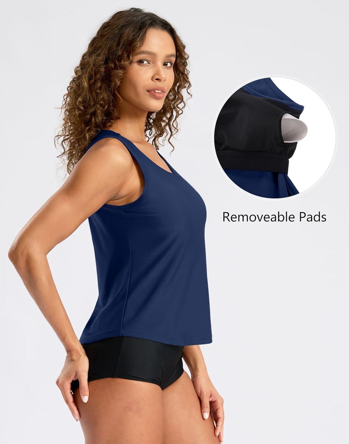 imageG Gradual Tankini Tops for Women High Neck Swimsuits Swim Top Modest Bathing Suit Swimwear Tank Top only No BottomNavy