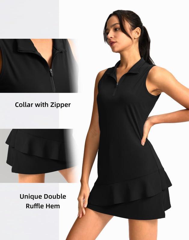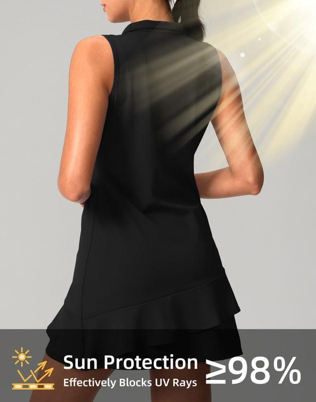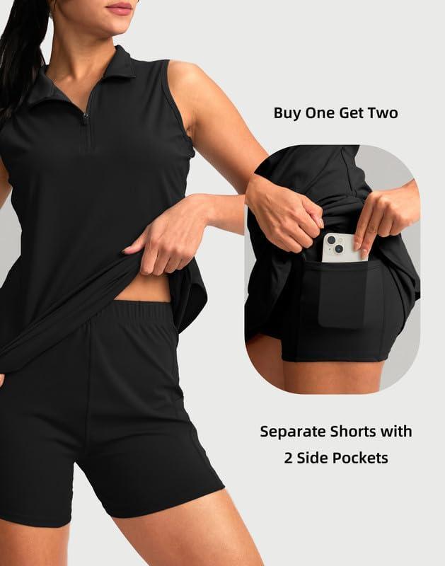 G Gradual Tennis Dress for Women Golf Outfits with Shorts and Pockets Sleeveless Active Exercise Athletic Dresses for Women(Black)