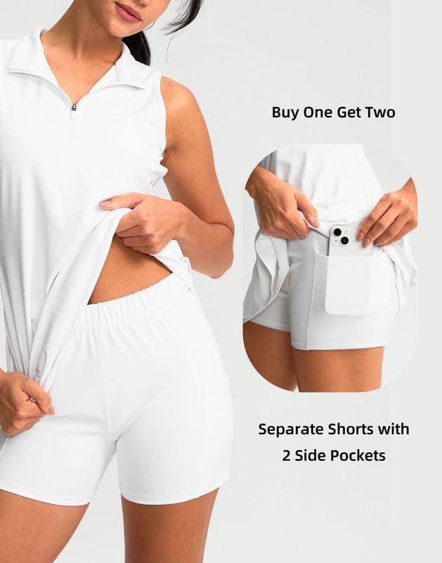 G Gradual Tennis Dress for Women Golf Outfits with Shorts and Pockets Sleeveless Active Exercise Athletic Dresses for Women(C-white)