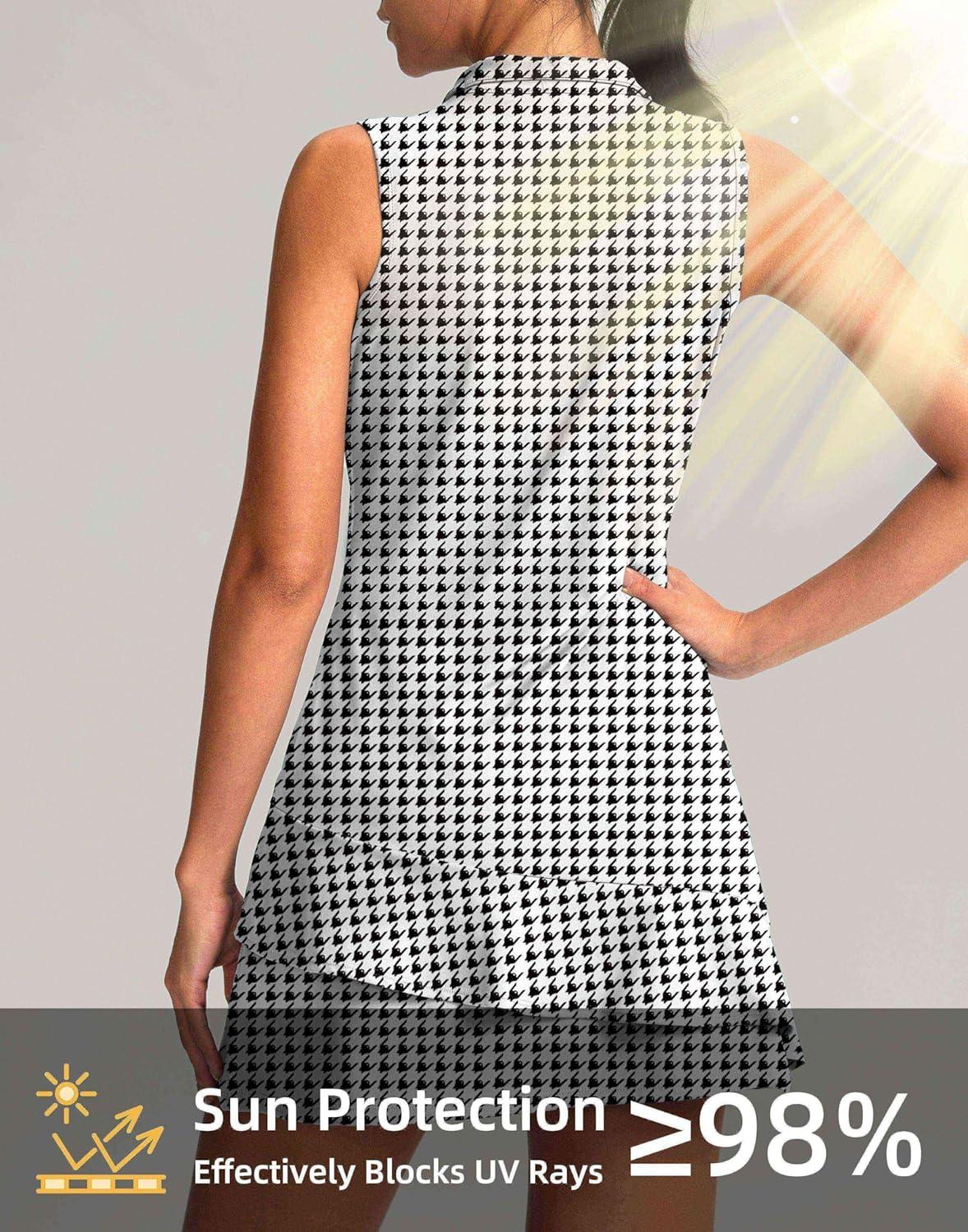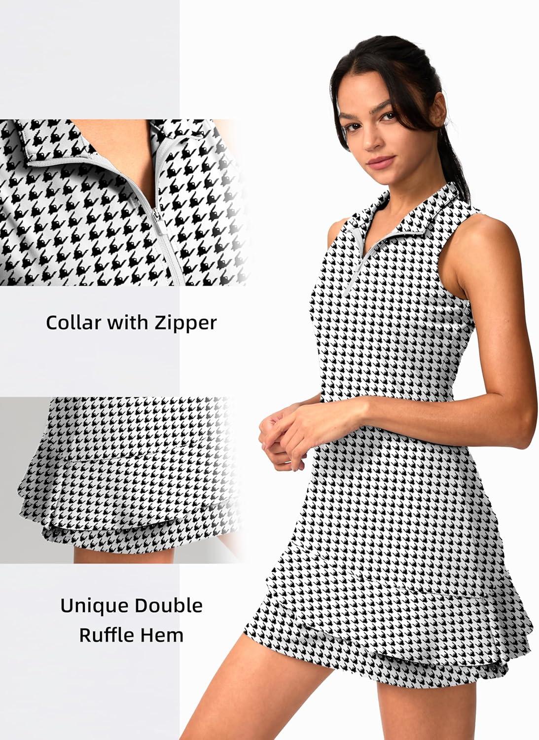 G Gradual Tennis Dress for Women Golf Outfits with Shorts and Pockets Sleeveless Active Exercise Athletic Dresses for Women(Houndstooth)