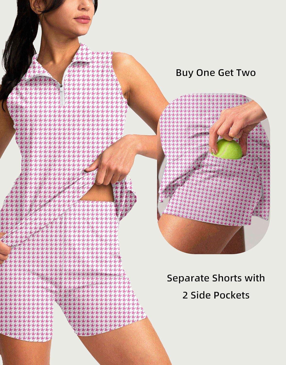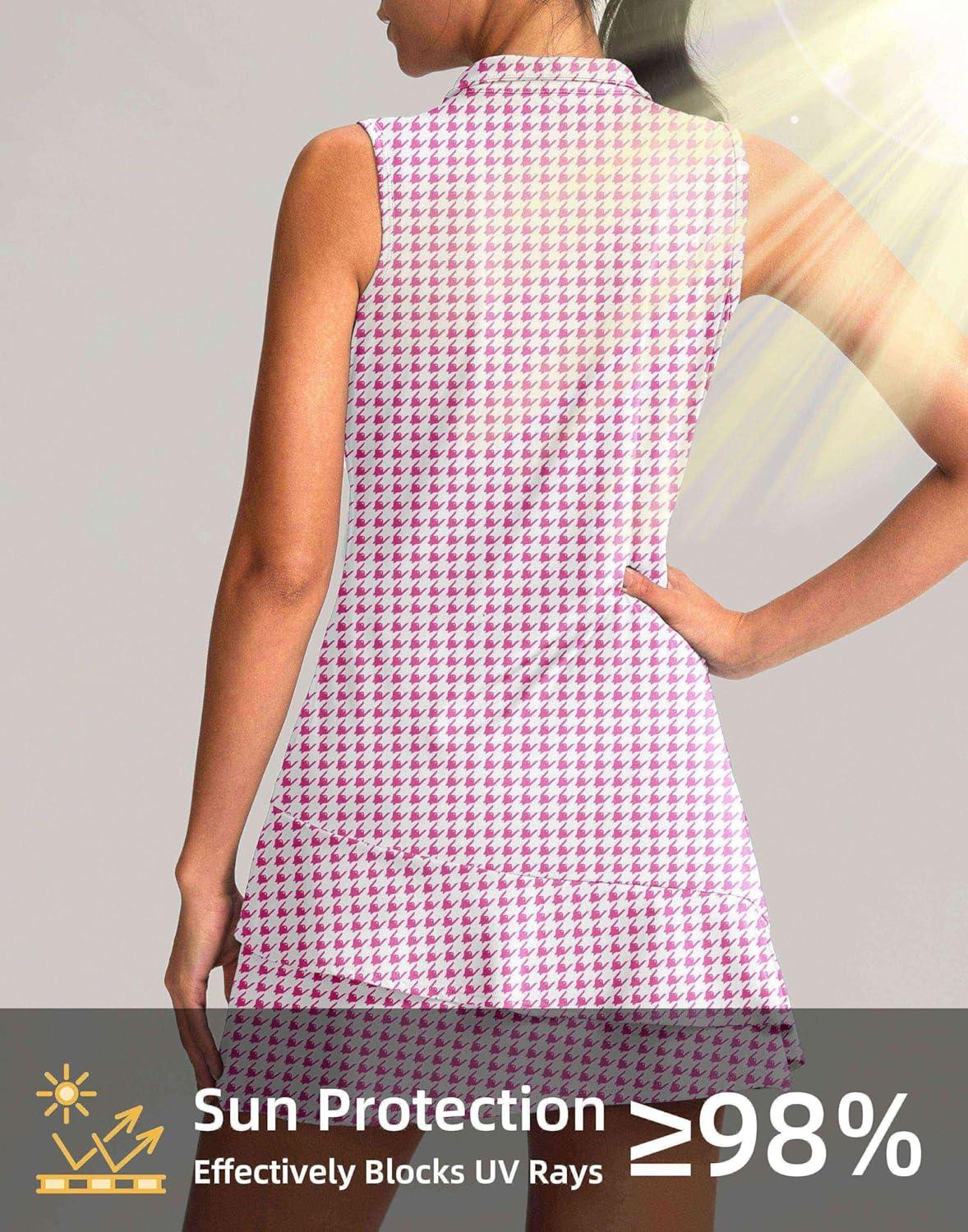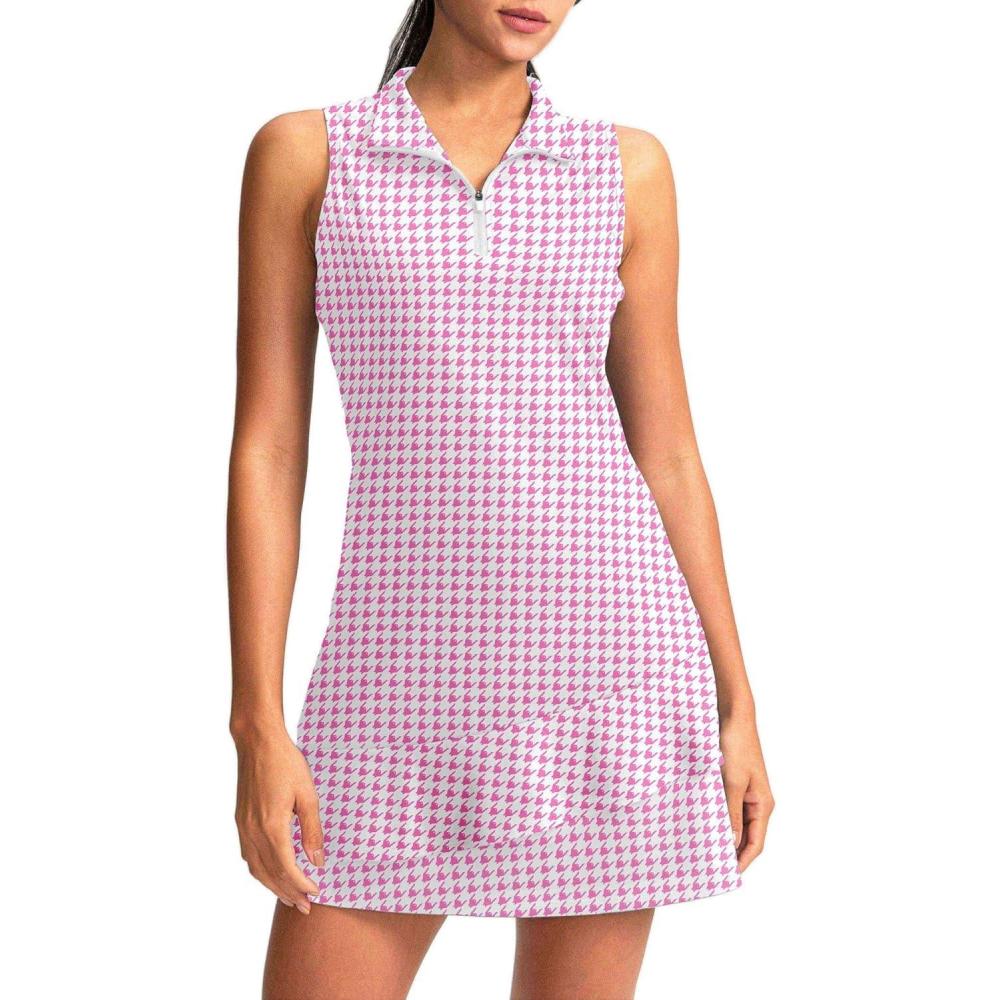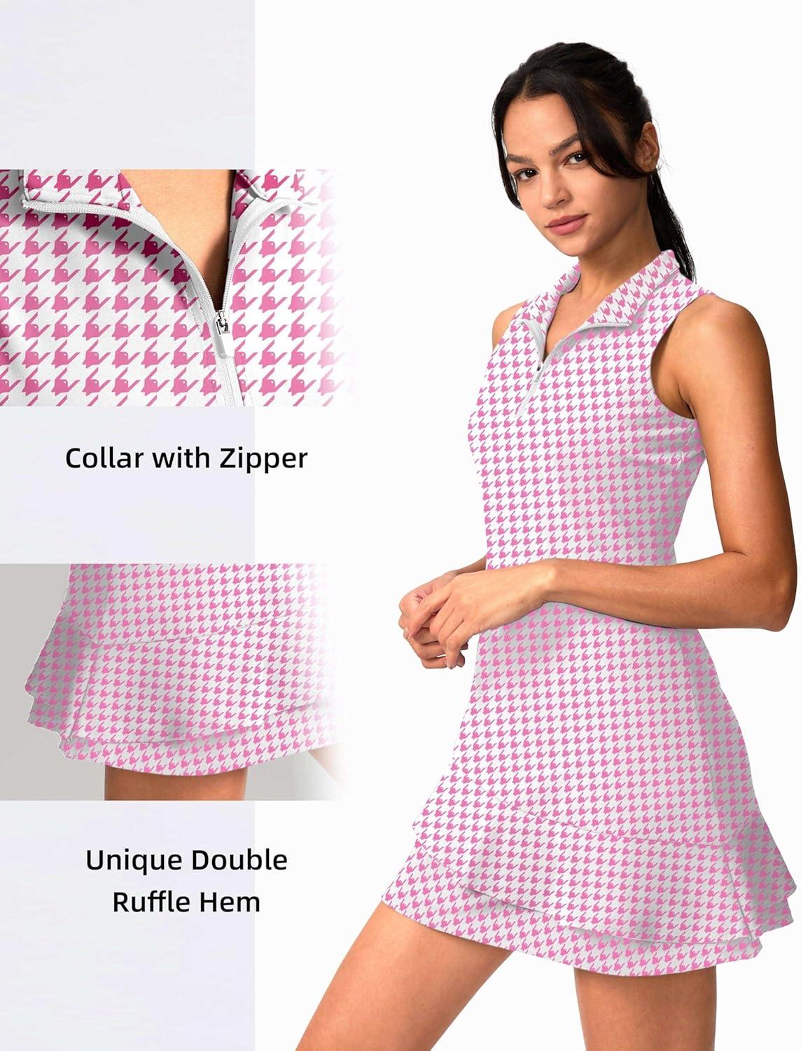 G Gradual Tennis Dress for Women Golf Outfits with Shorts and Pockets Sleeveless Active Exercise Athletic Dresses for Women(Pink Houndstooth)